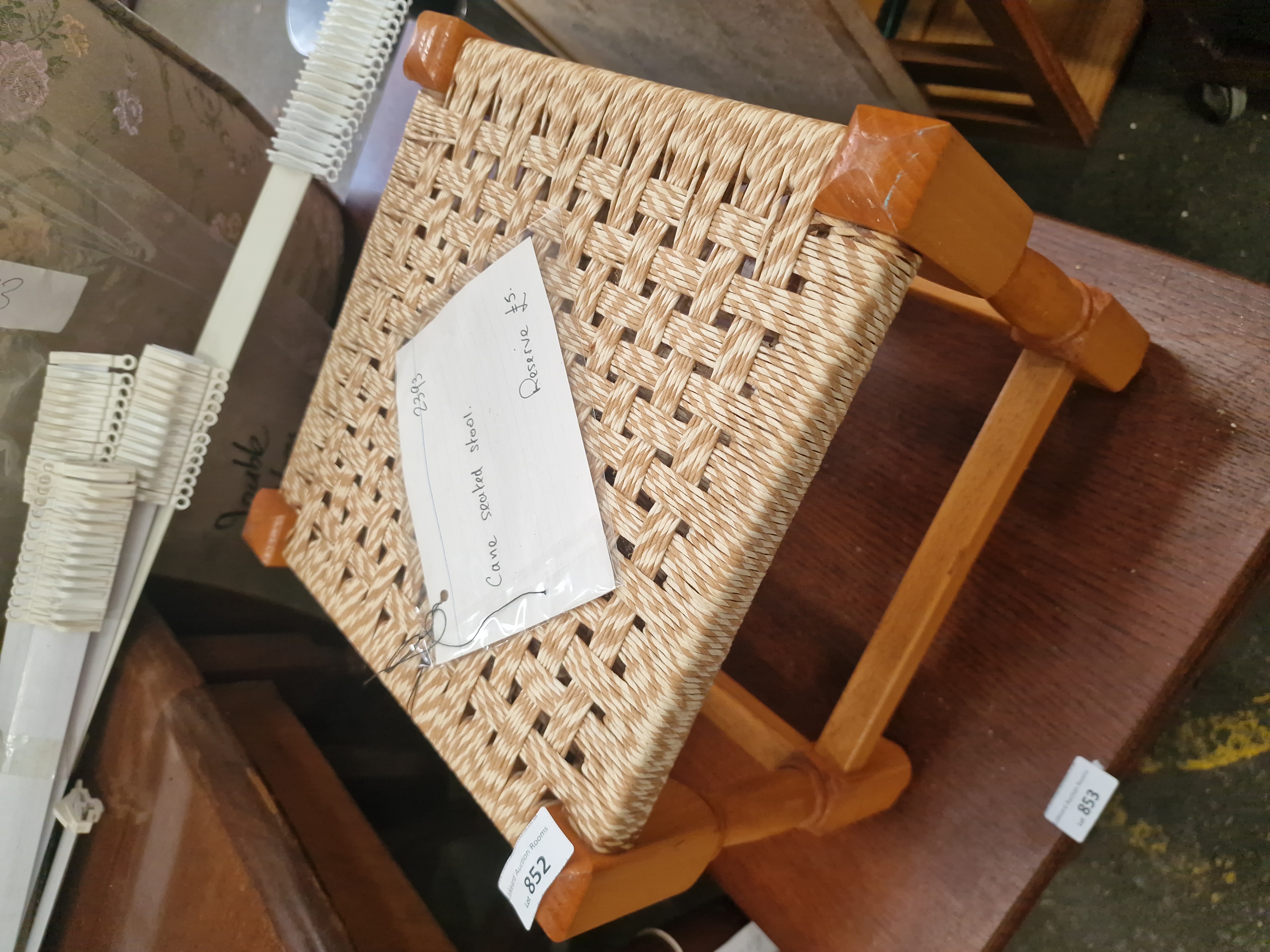 Lot 852: A 20th-century hardwood footstool with a woven cord seat