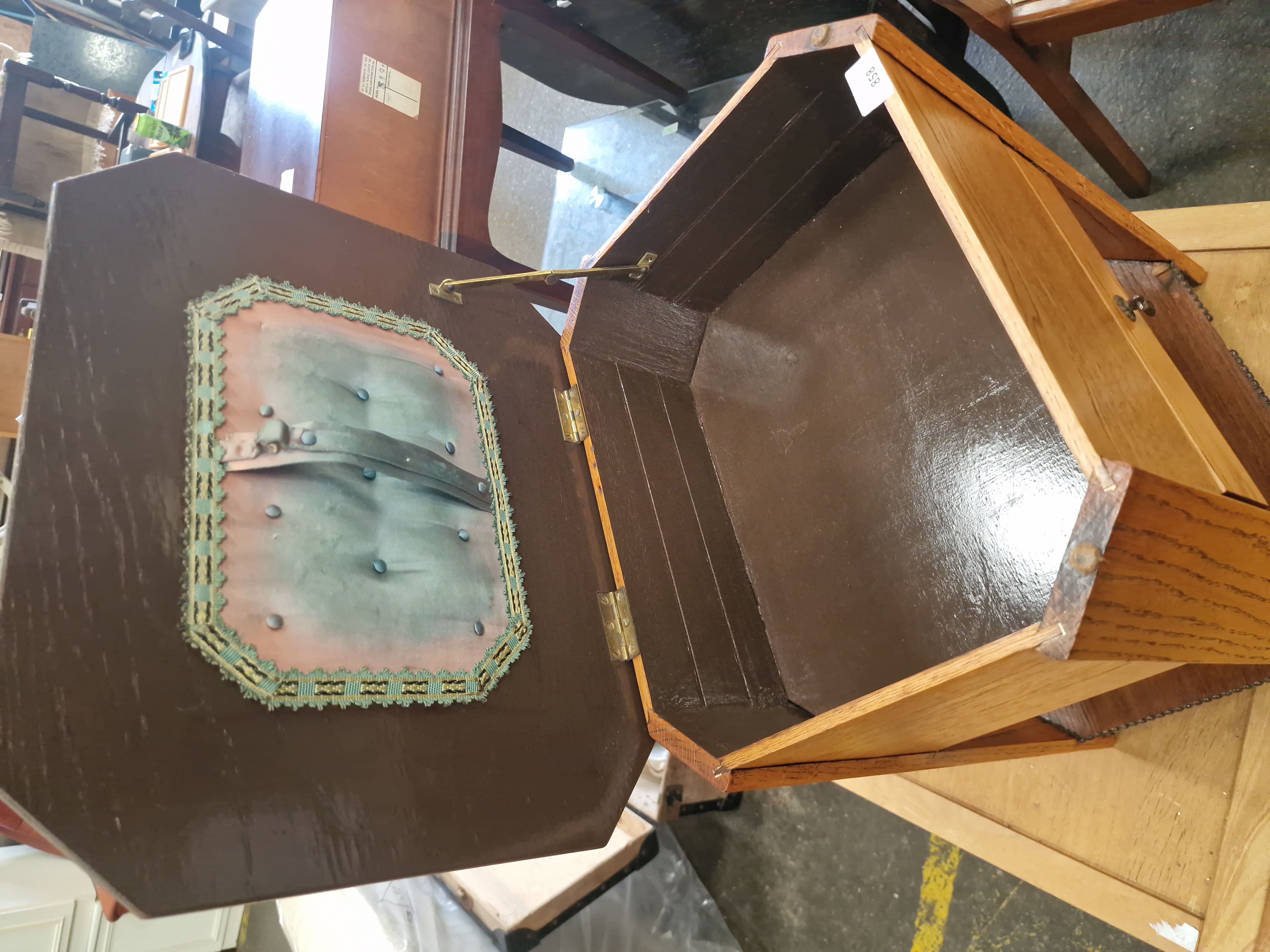 Lot 858: Early 20th Century Arts and Crafts Style Hexagonal Oak Sewing Table