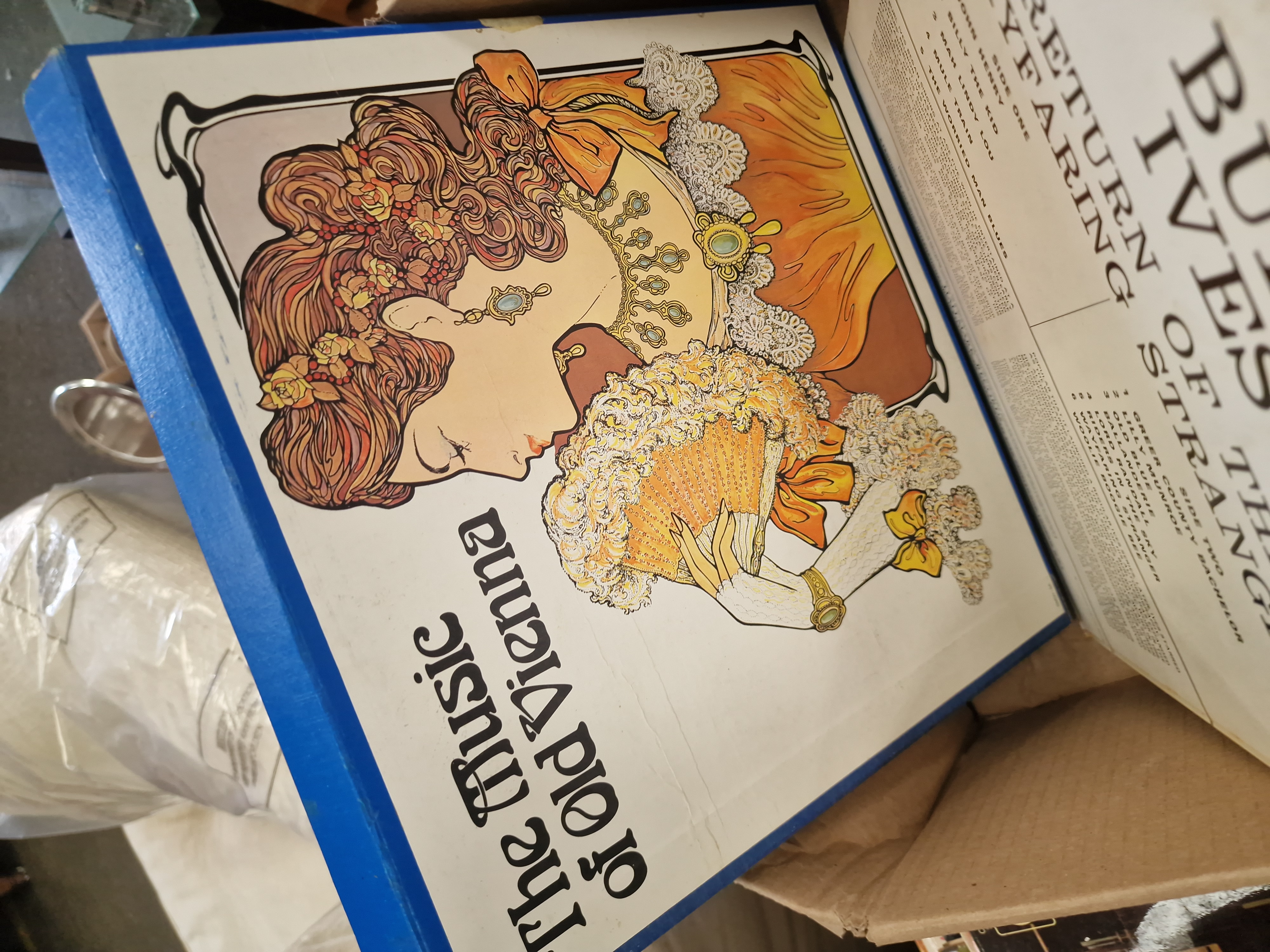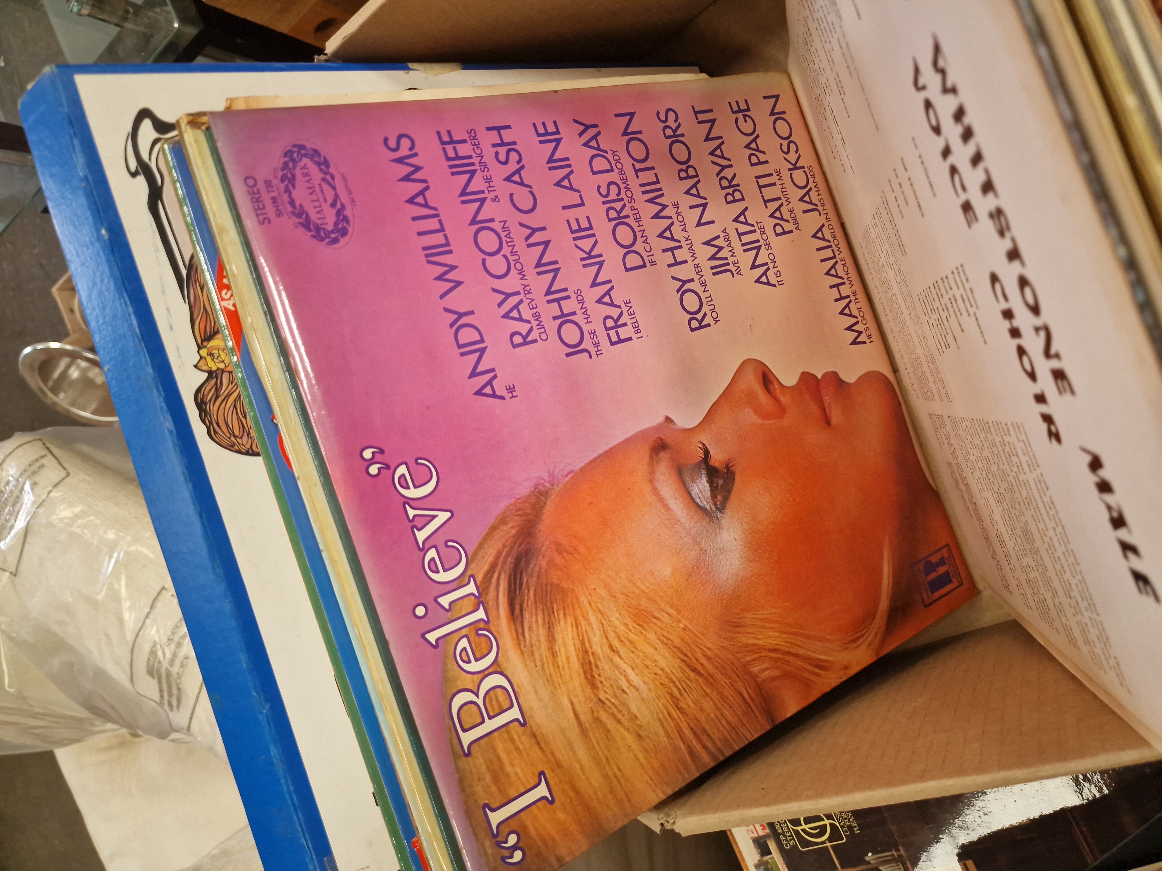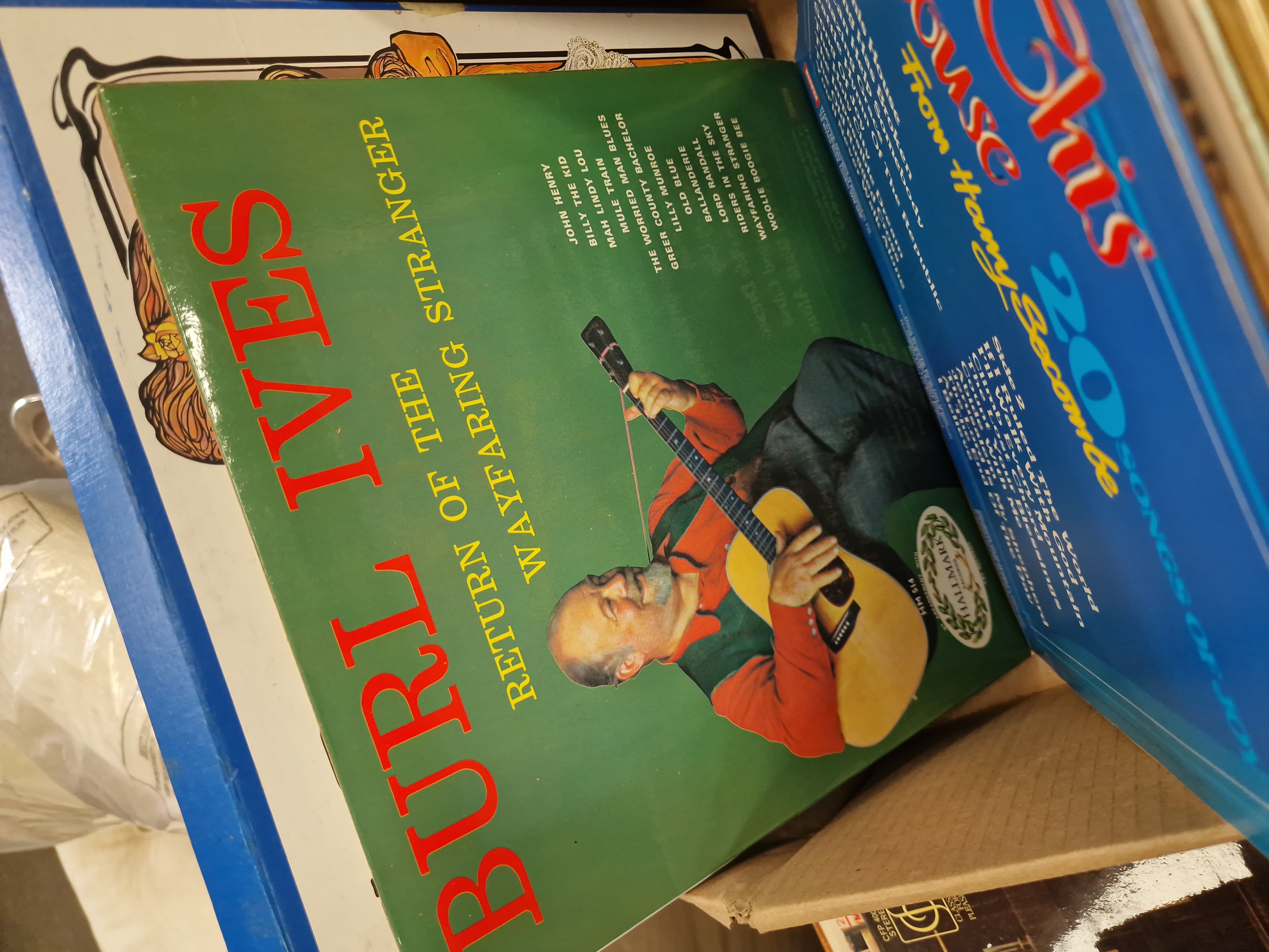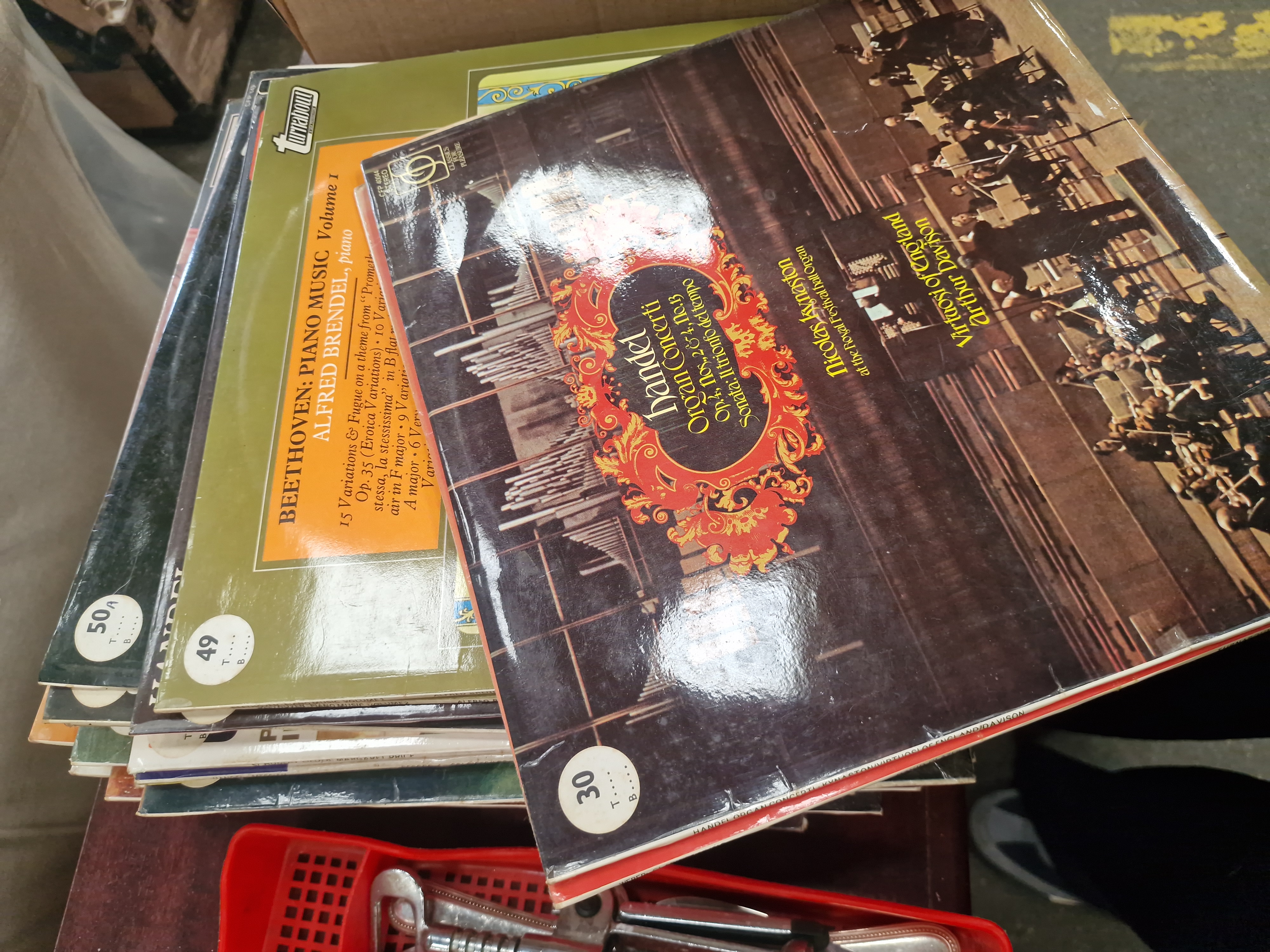 A collection of vintage vinyl records comprising approximately 40-60+ units of 12-inch Long Play (LP) albums and 7-inch 45 RPM singles. The assortment covers various genres including pop, rock, folk, musical theatre, religious, and classical music. Identified titles include Daryl Hall and John Oates – Beauty on a Back Street, Rodgers and Hammerstein’s The Sound of Music (RCA Victor), Burl Ives – Return of the Wayfaring Stranger (Hallmark HM 514), and Tennessee Ernie Ford – Sings from his Book of Favorite Hymns (Capitol Records). Vocal compilations such as I Believe (Hallmark) featuring Johnny Cash and Doris Day are present, alongside classical works including Alfred Brendel – Beethoven: Piano Music Volume I (Turnabout), Handel Organ Concerti featuring Nicolas Kynaston (Classics for Pleasure), and Ernest Maynard – Organ Music at Bath Abbey (Ryemuse). The collection includes 45 RPM singles such as The Browns – The Three Bells (RCA). Visible labels include RCA Victor, Capitol Records, Hallmark, Turnabout, Classics for Pleasure, and Ryemuse. The lot bears a sticker from Liskeard Auction Rooms with the number 861.