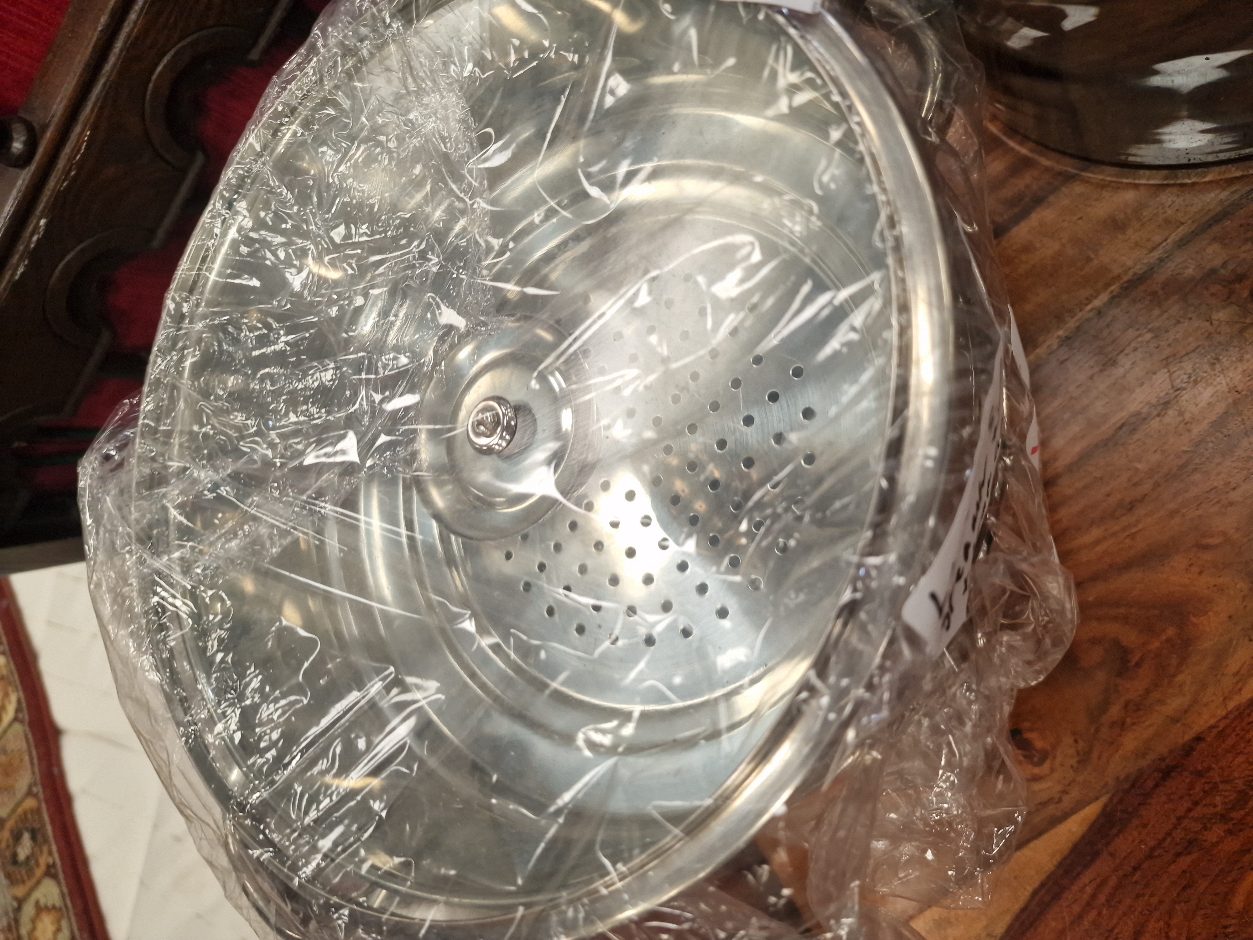 Lot 869: A stainless steel steamer set and a smoked glass bowl