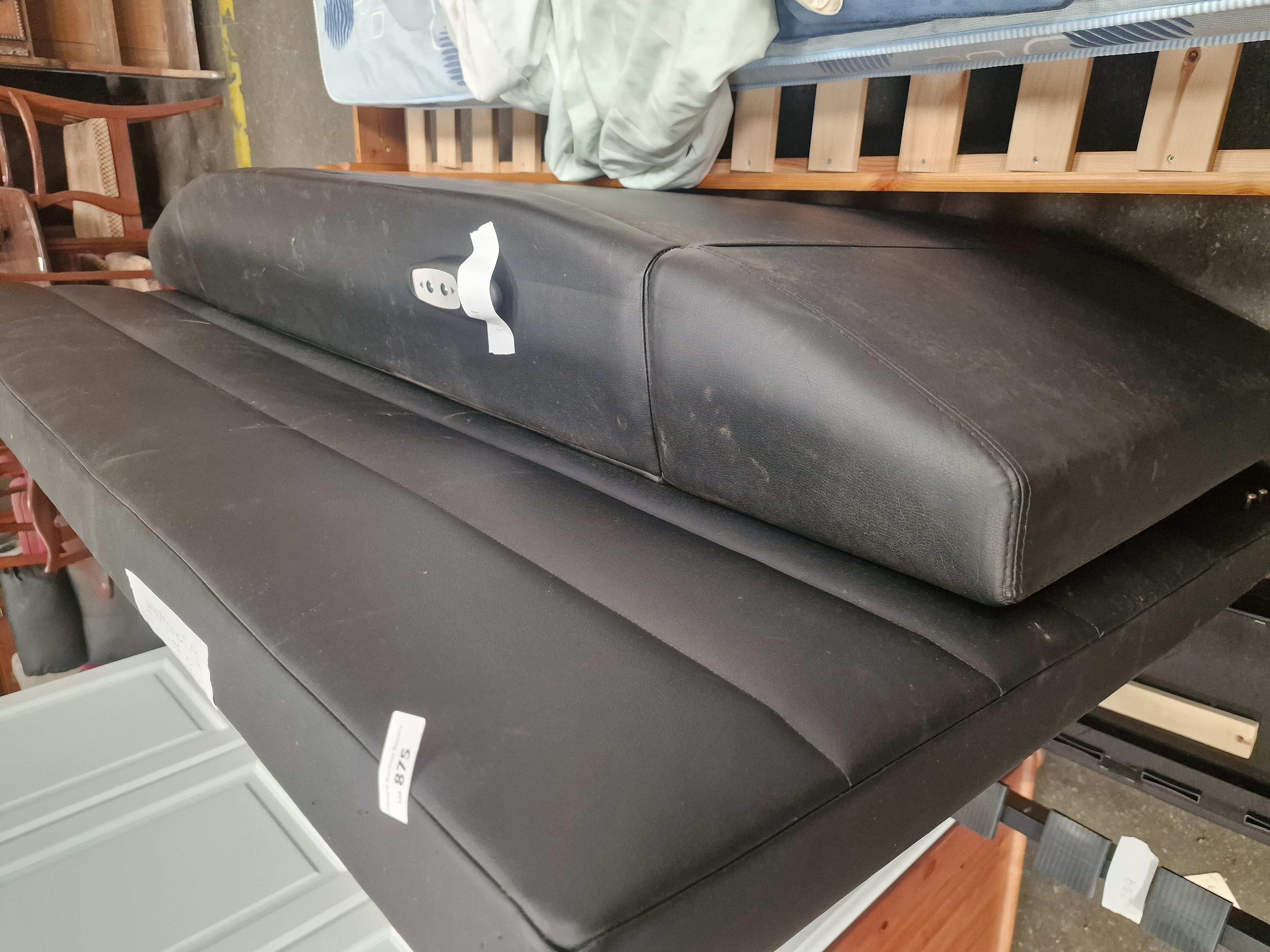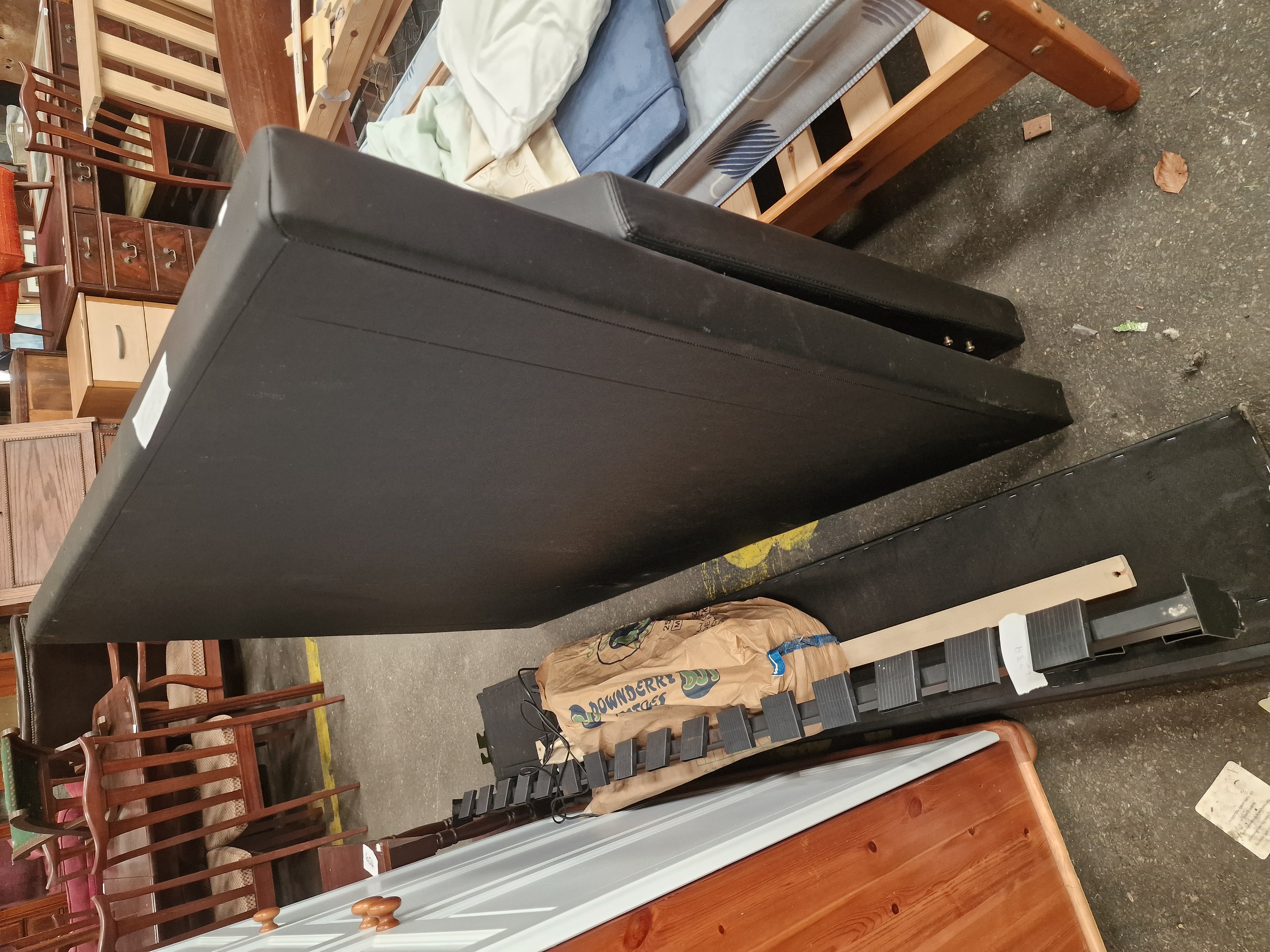 Lot 875: A contemporary black faux-leather upholstered double TV bed frame