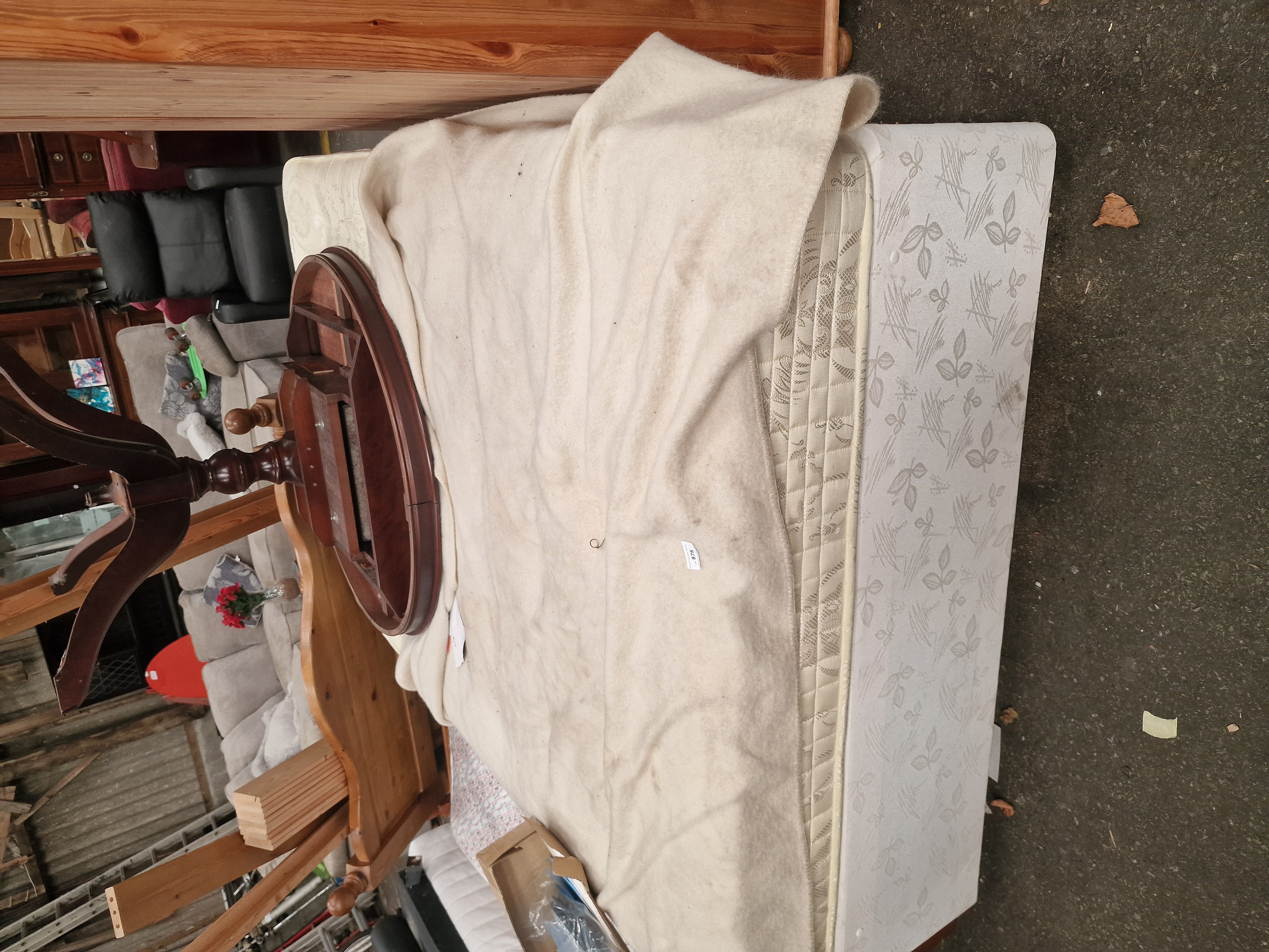 Lot 878: A modern single divan bed base and mattress with a separate pine headboard