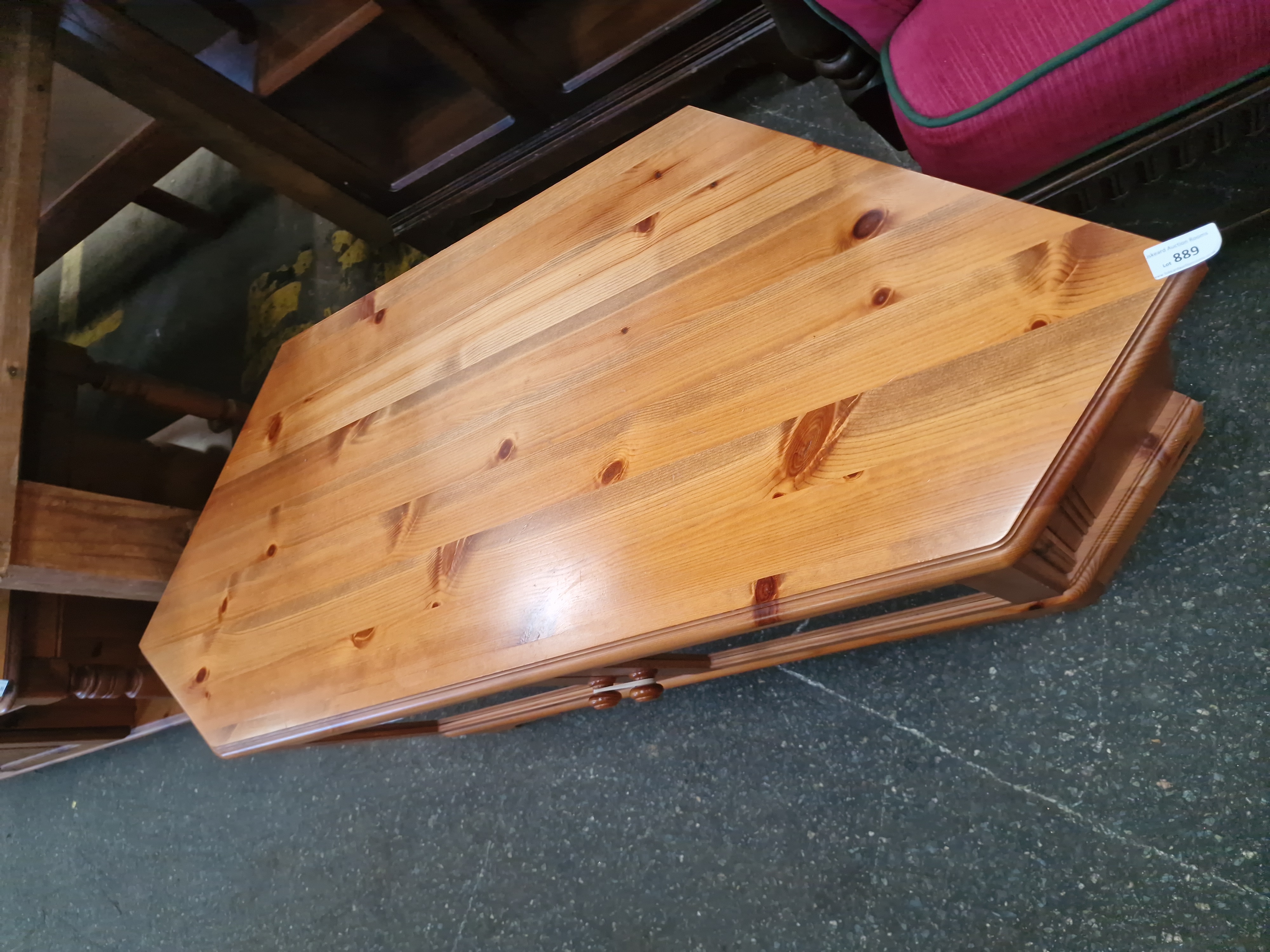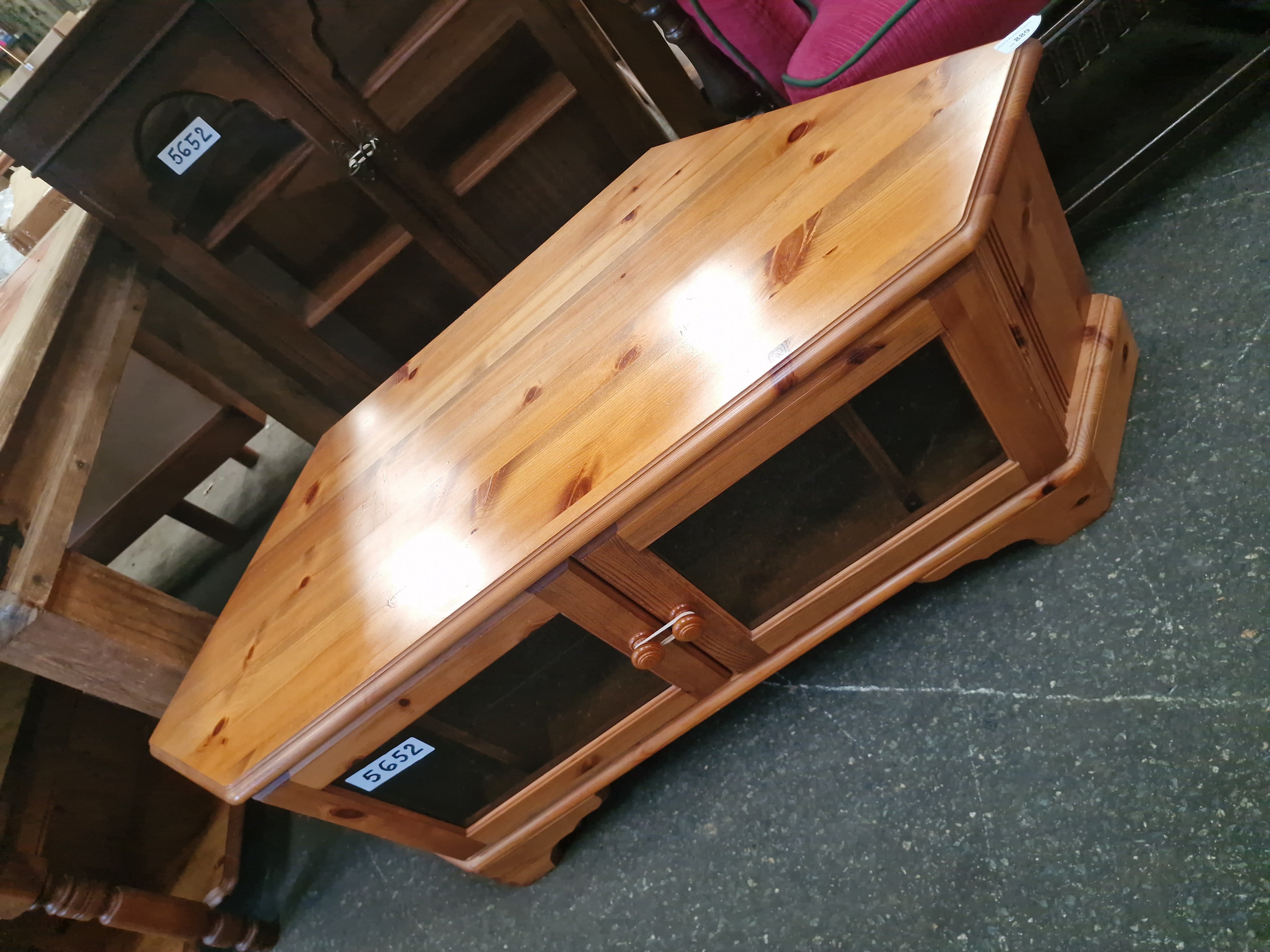 Lot 889: A modern knotty pine corner media cabinet