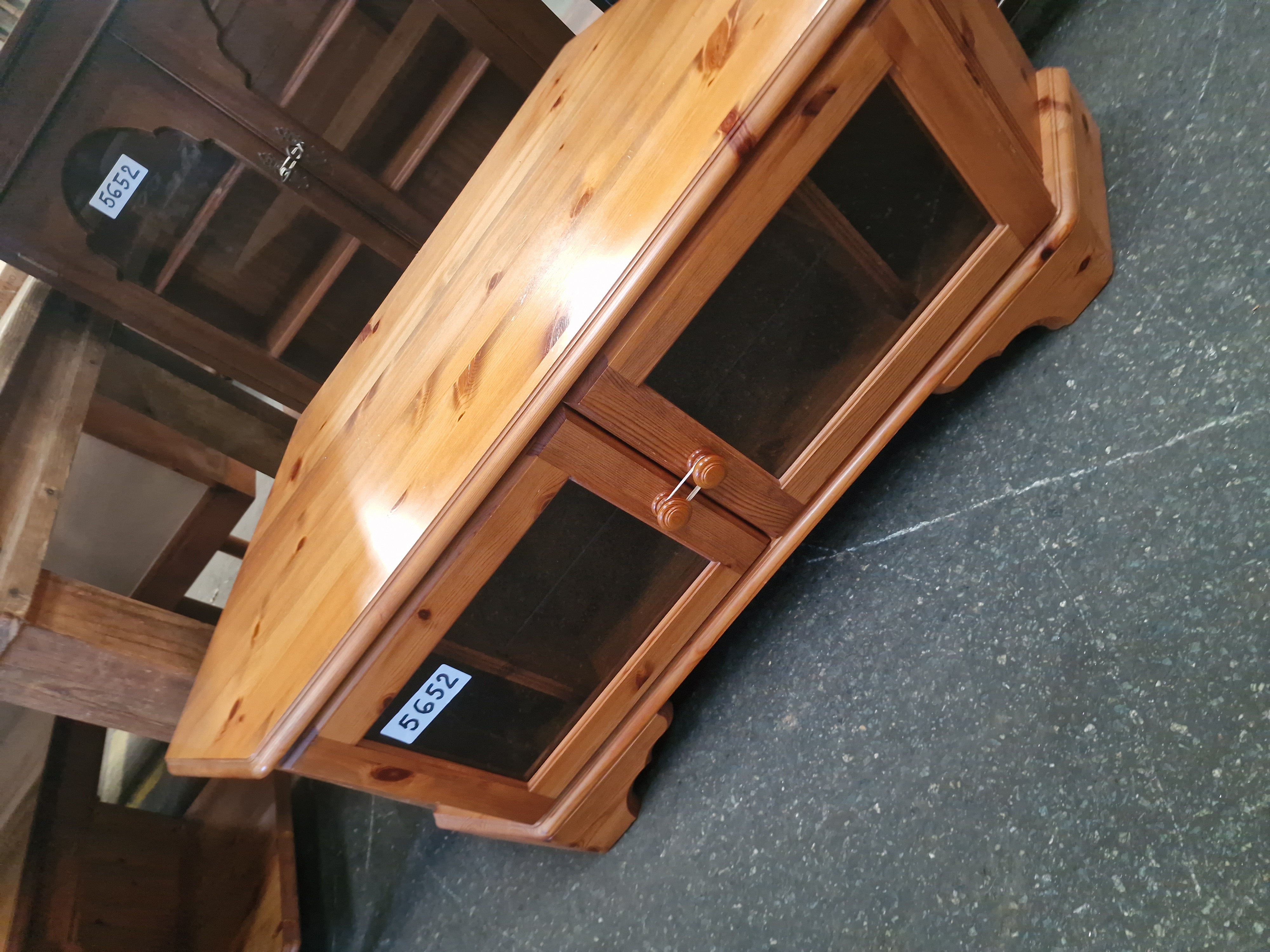 The cabinet is in good overall condition, showing minor surface wear and light scratches consistent with age and domestic use. The glazing is intact and free from cracks. The doors and hardware are functional.