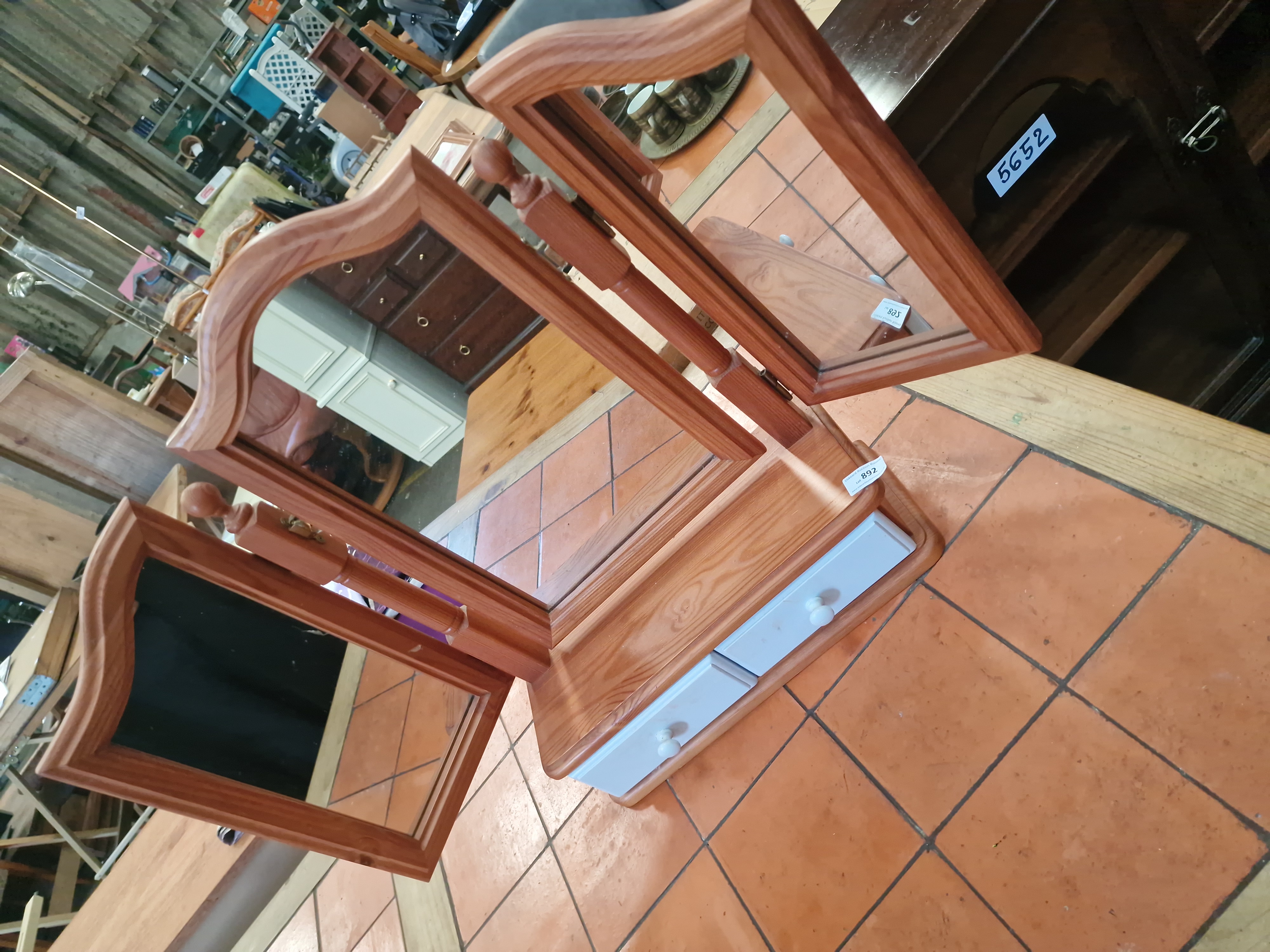 Lot 892: A late 20th-century pine triptych dressing table mirror with two drawers