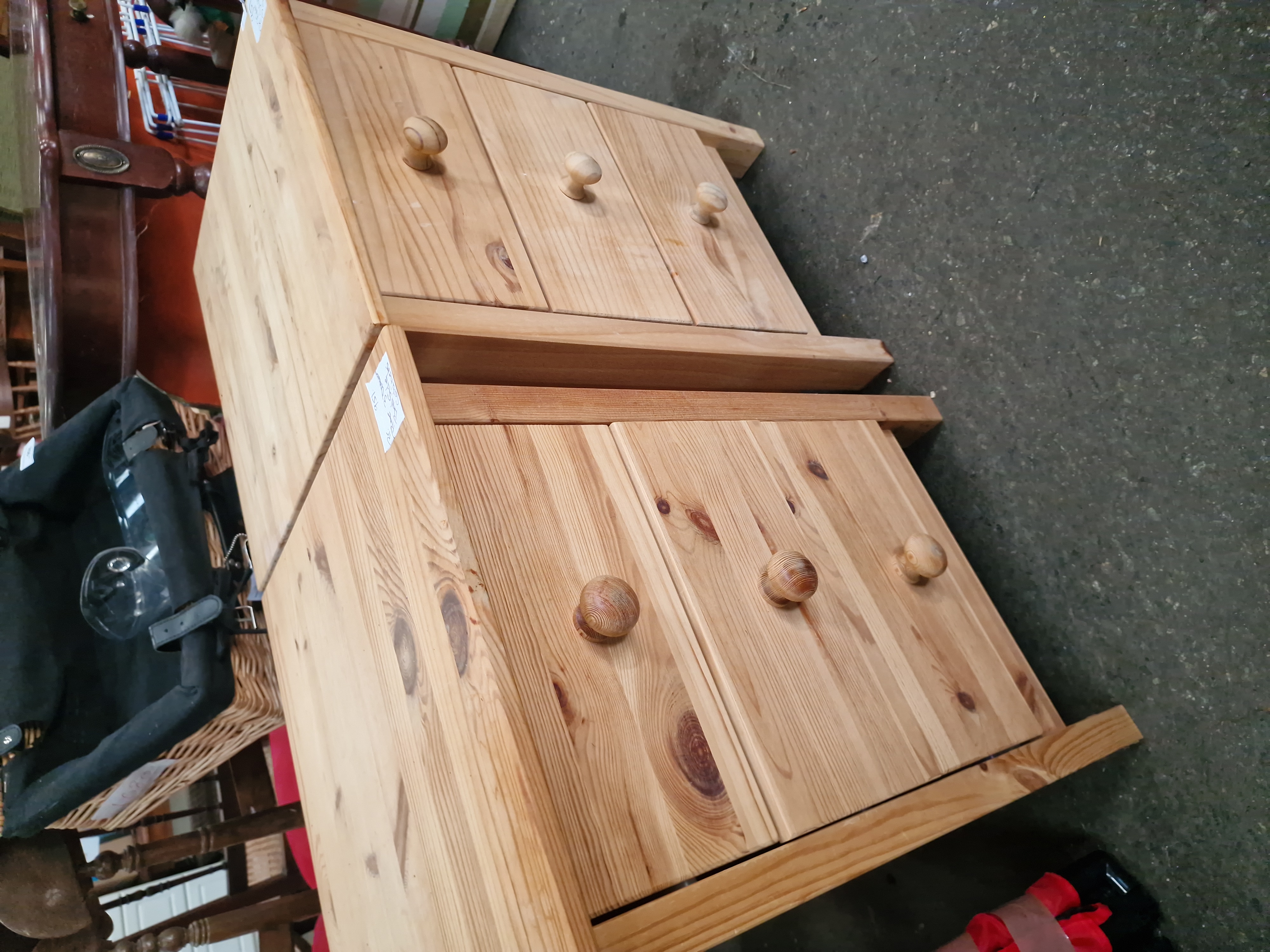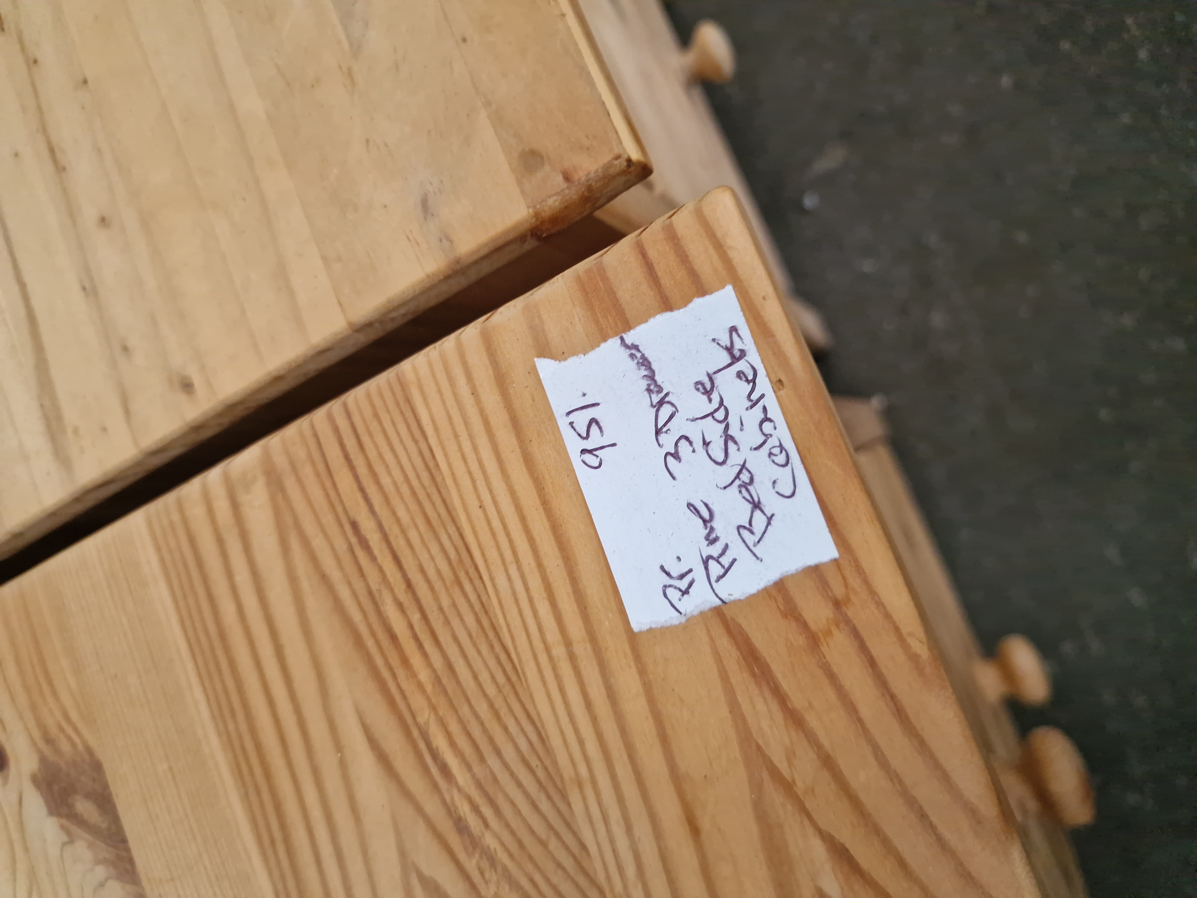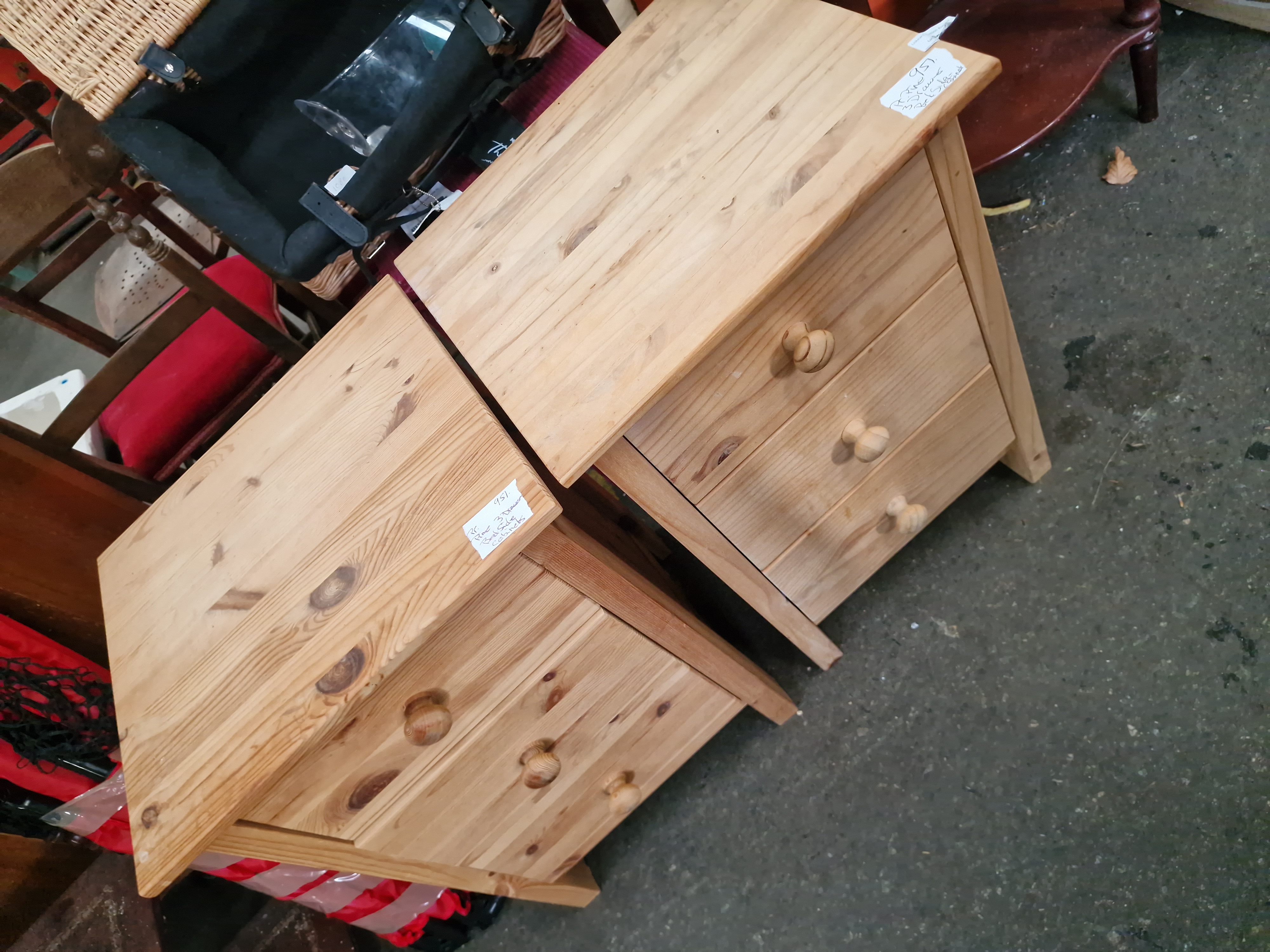 Lot 907: A Pair of Contemporary Pine Three-Drawer Bedside Cabinets