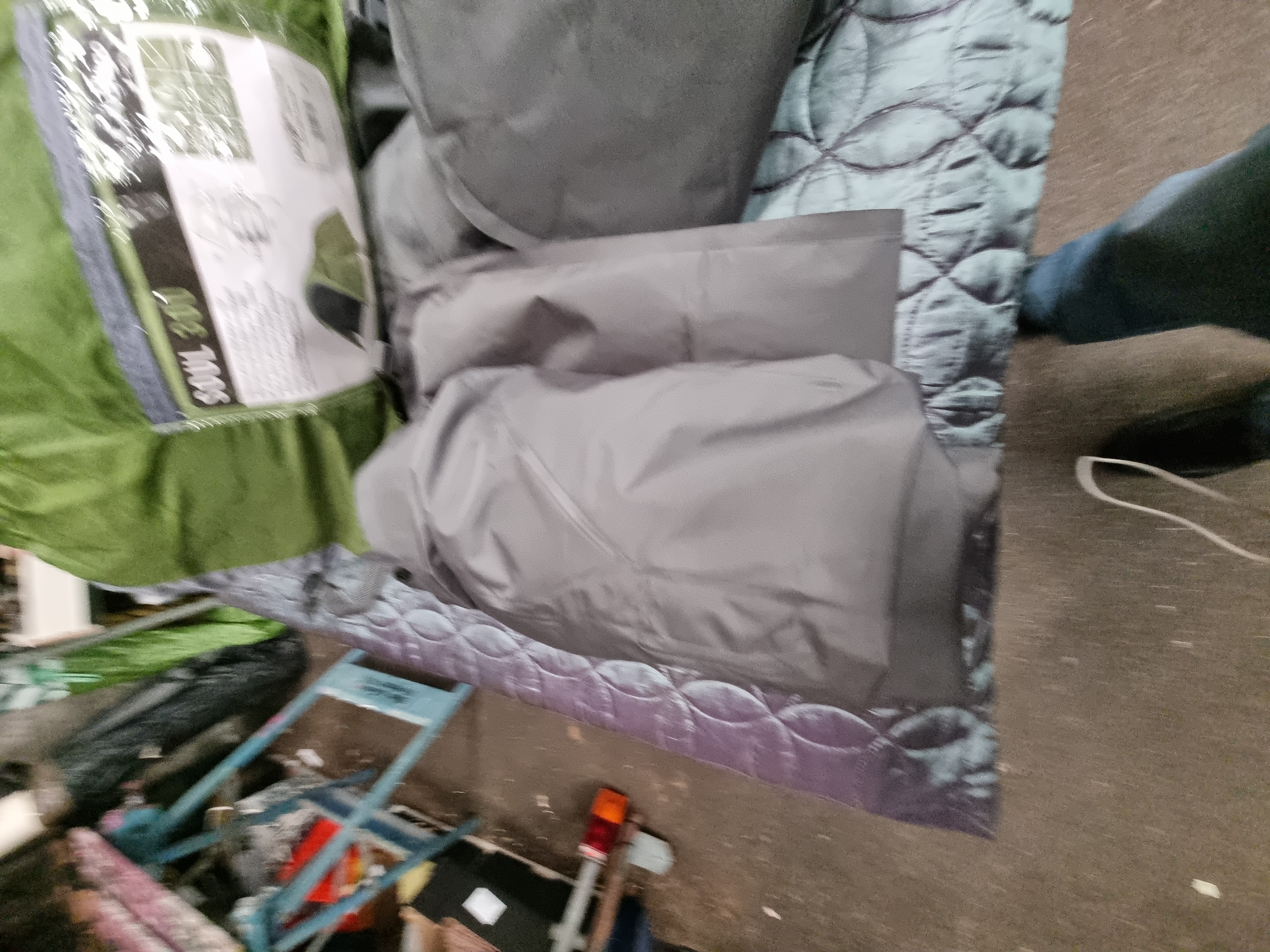 Mixed Condition. The items are in an open-box or loose state, indicating they may be customer returns or liquidation stock. The tent is in its original carry bag, while the mattresses are loose. The items have not been inflation tested or fully pitched for inspection.