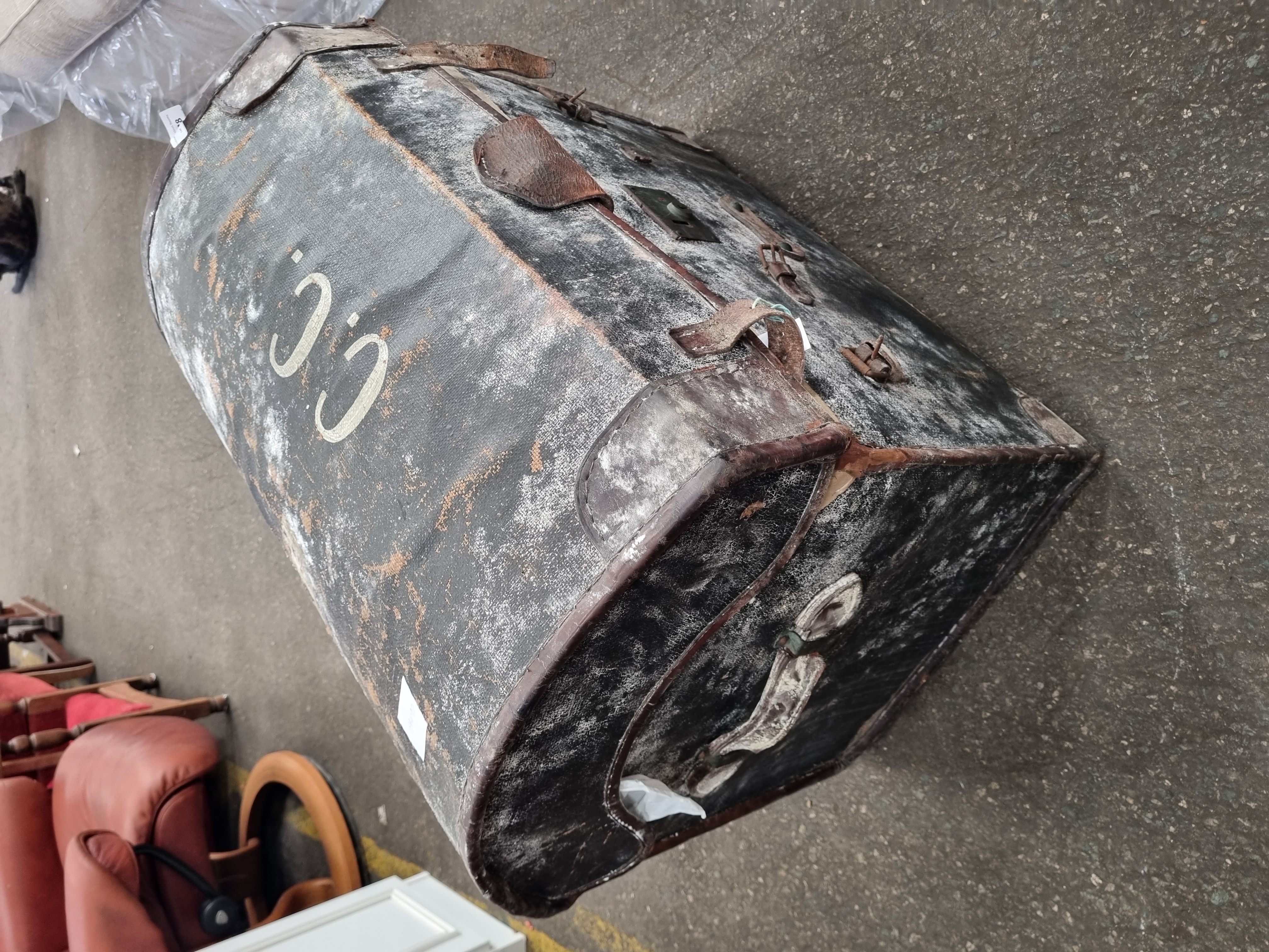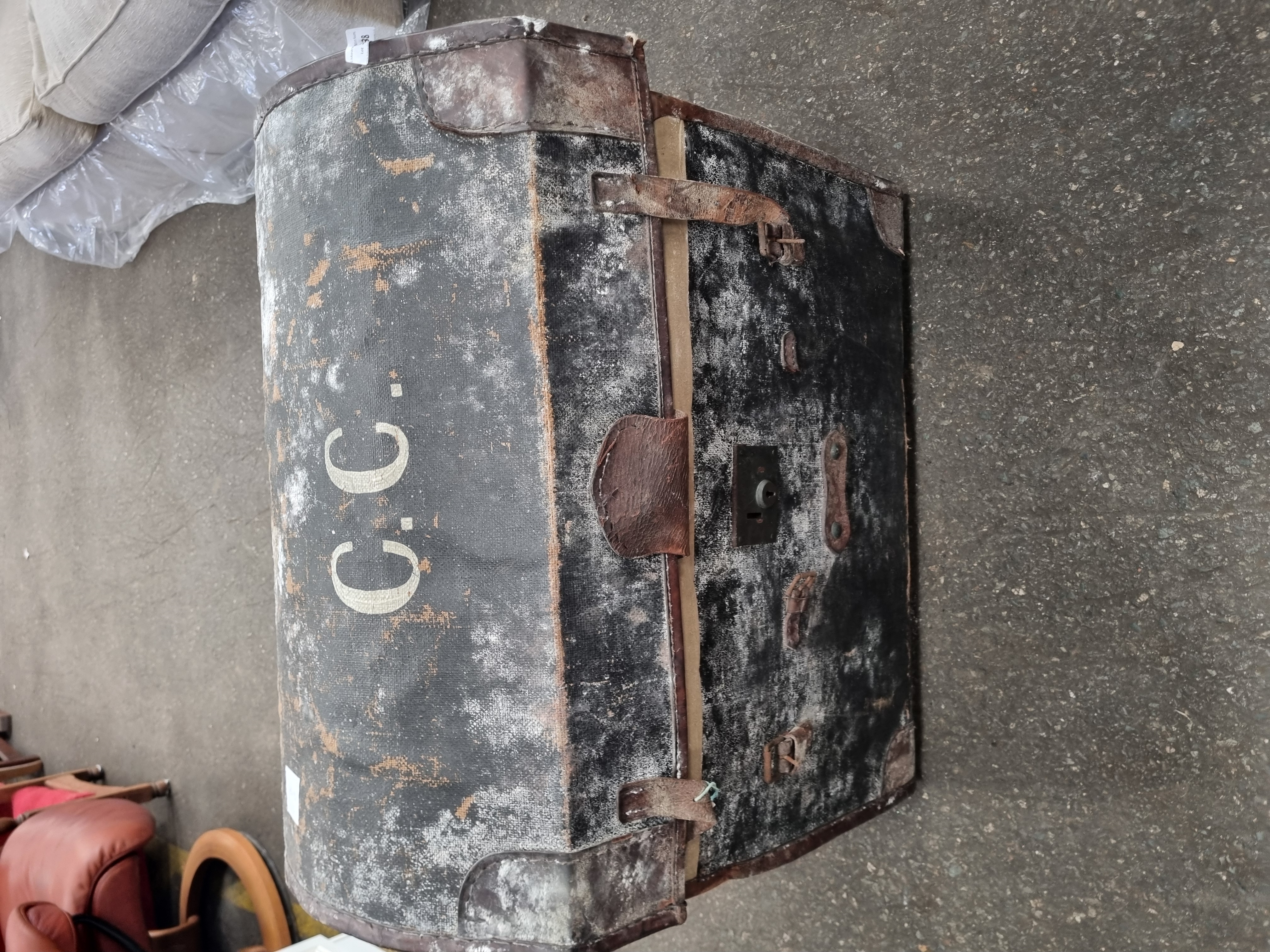 Lot 938: Early 20th-century canvas and leather-bound domed-top steamer trunk