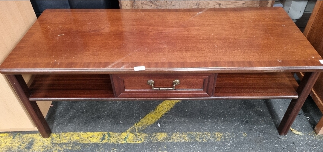 Lot 941: Traditional Mahogany Finished Coffee Table with Central Drawer and Lower Shelf