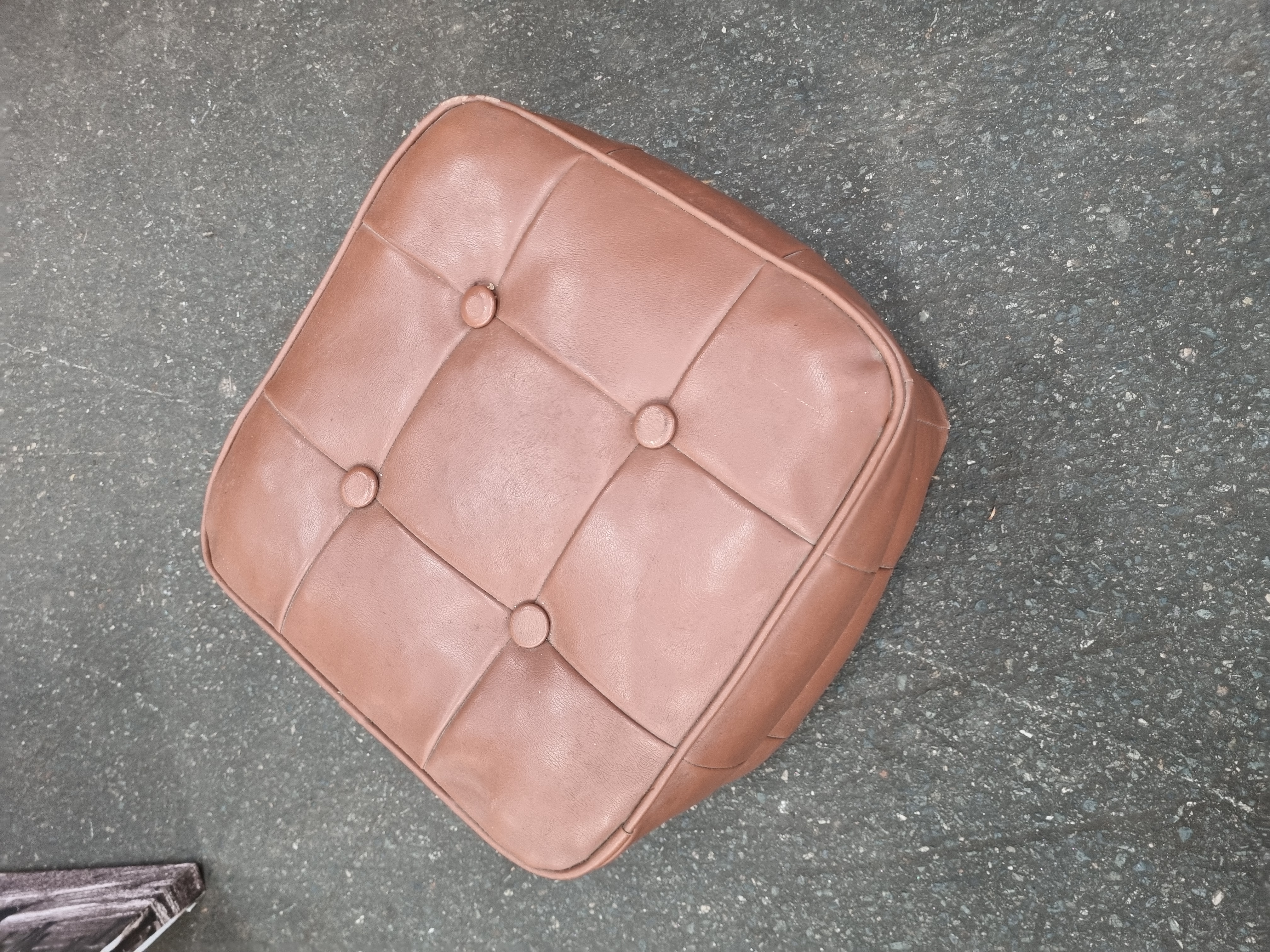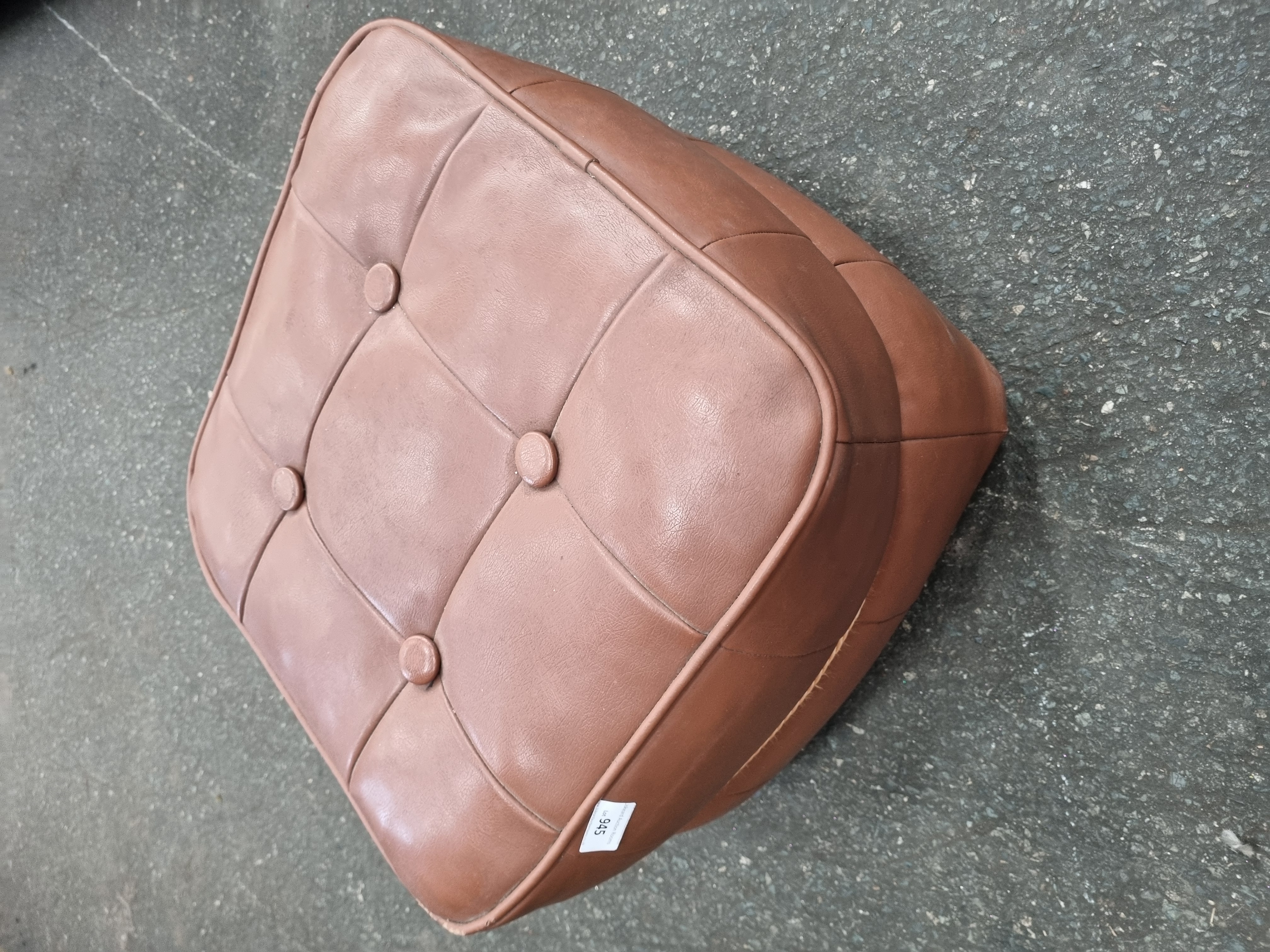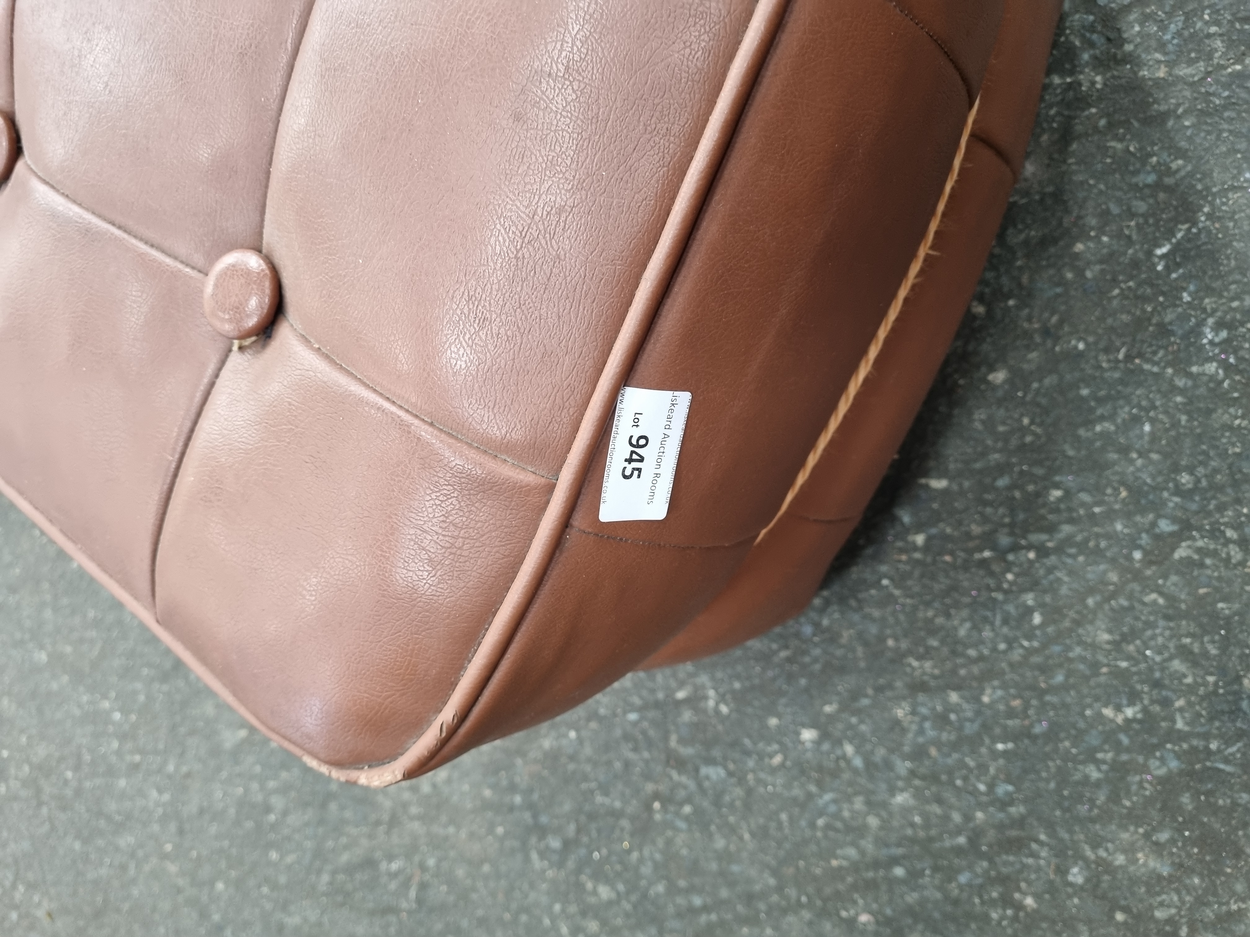 Lot 945: A Mid-Century Modern Tan Leather Tufted Ottoman by H.C. Hanley Colchester Ltd