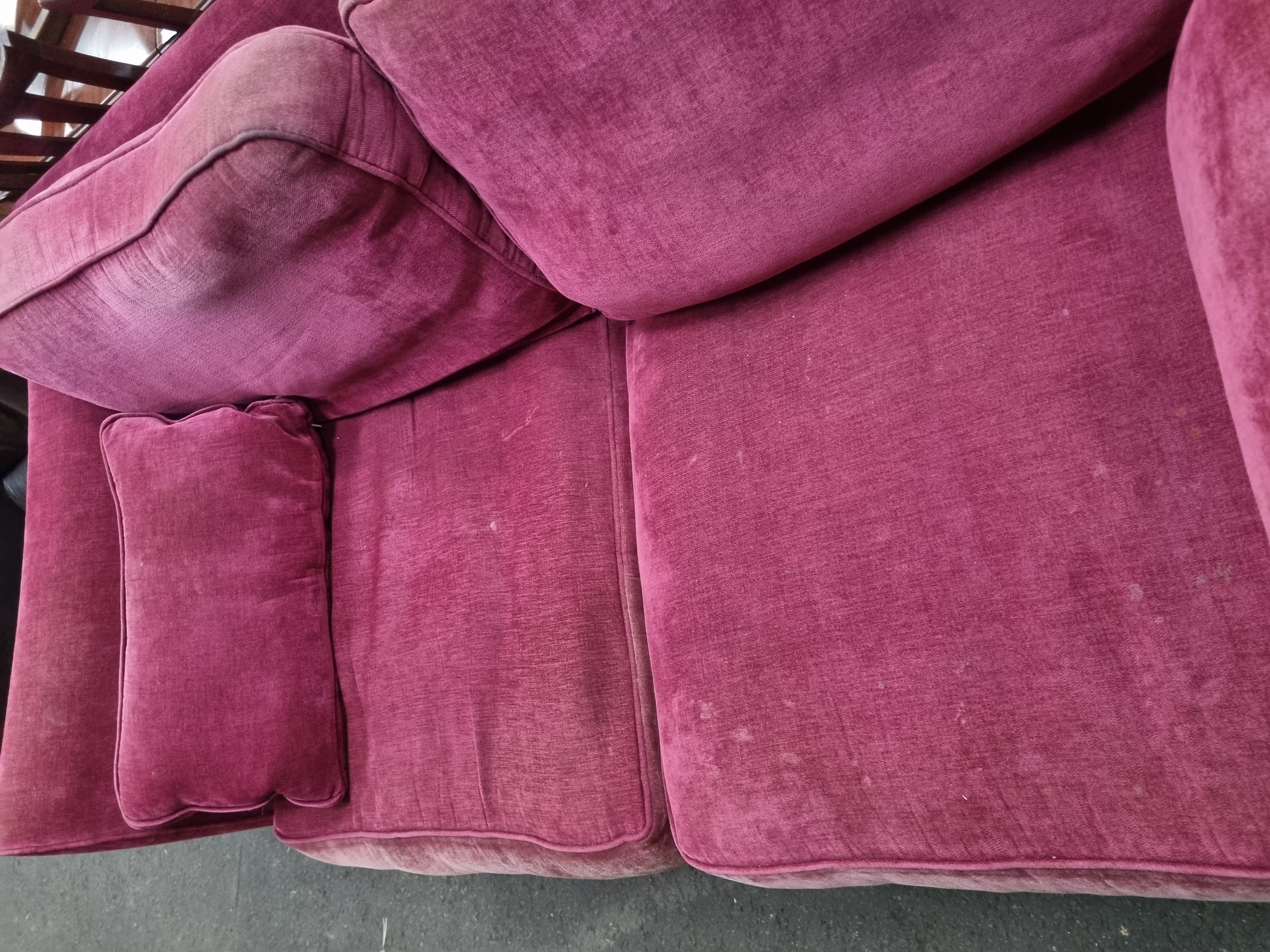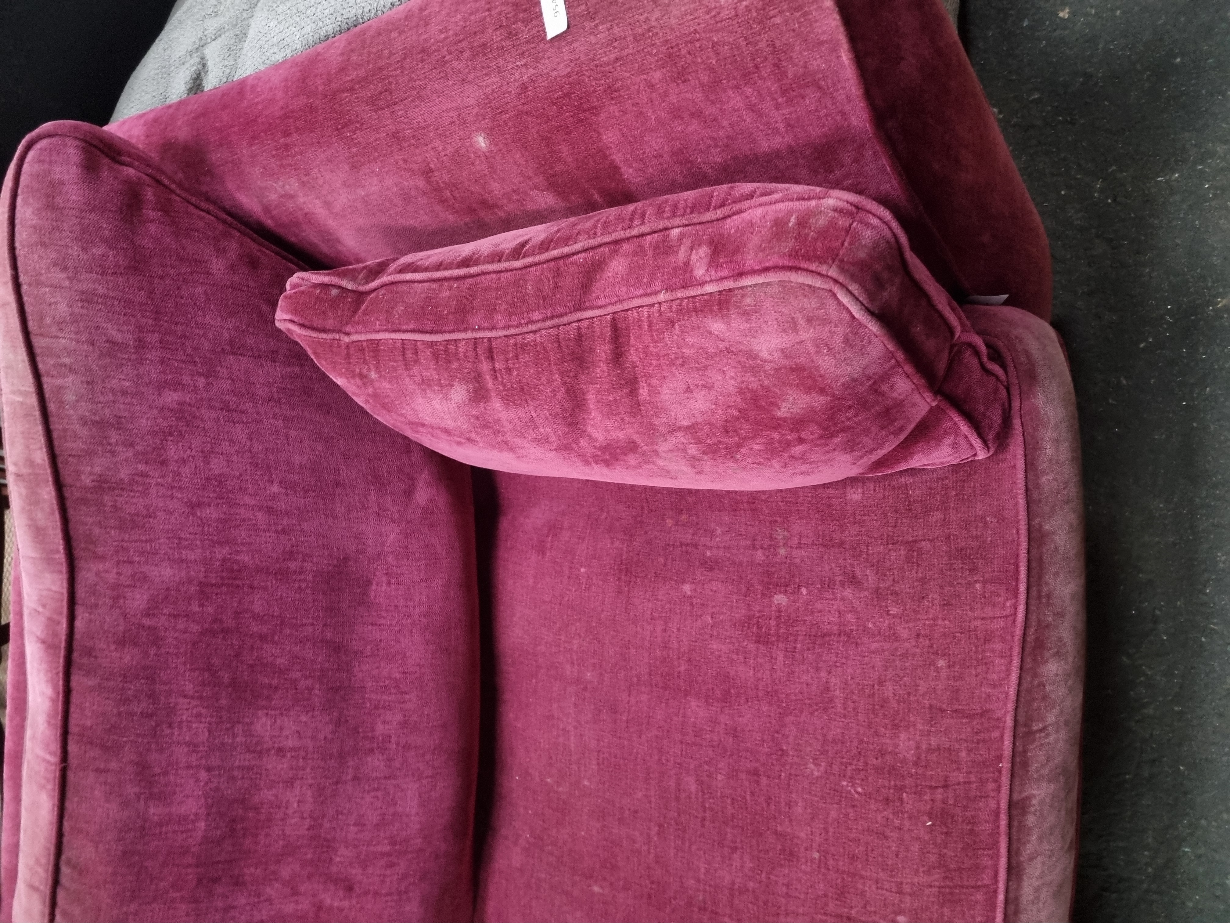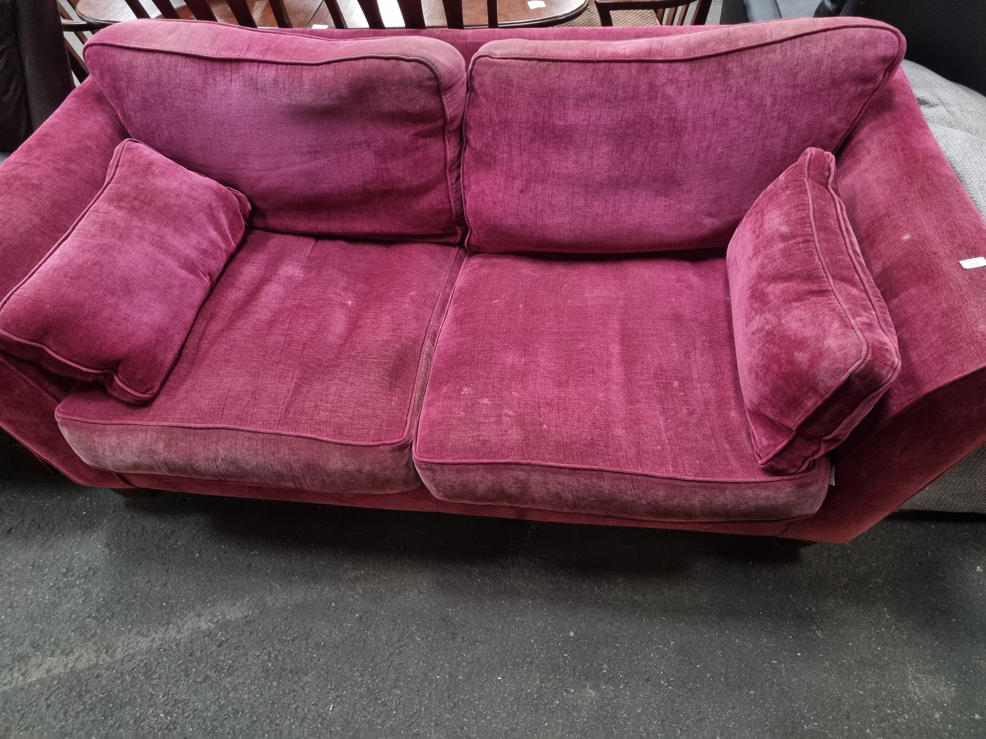 Lot 954: A contemporary two-seater upholstered sofa in magenta velvet