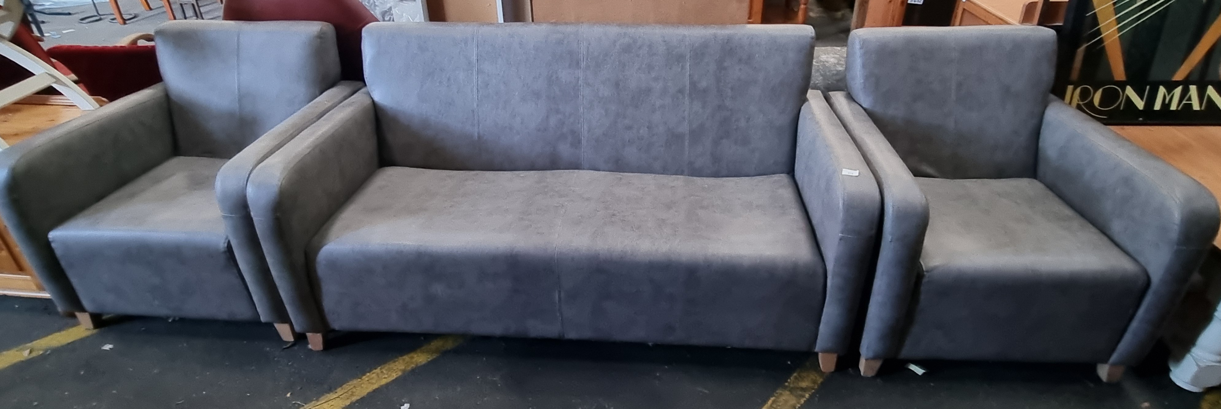 Lot 972: A contemporary three-piece lounge suite in grey mottled microfibre