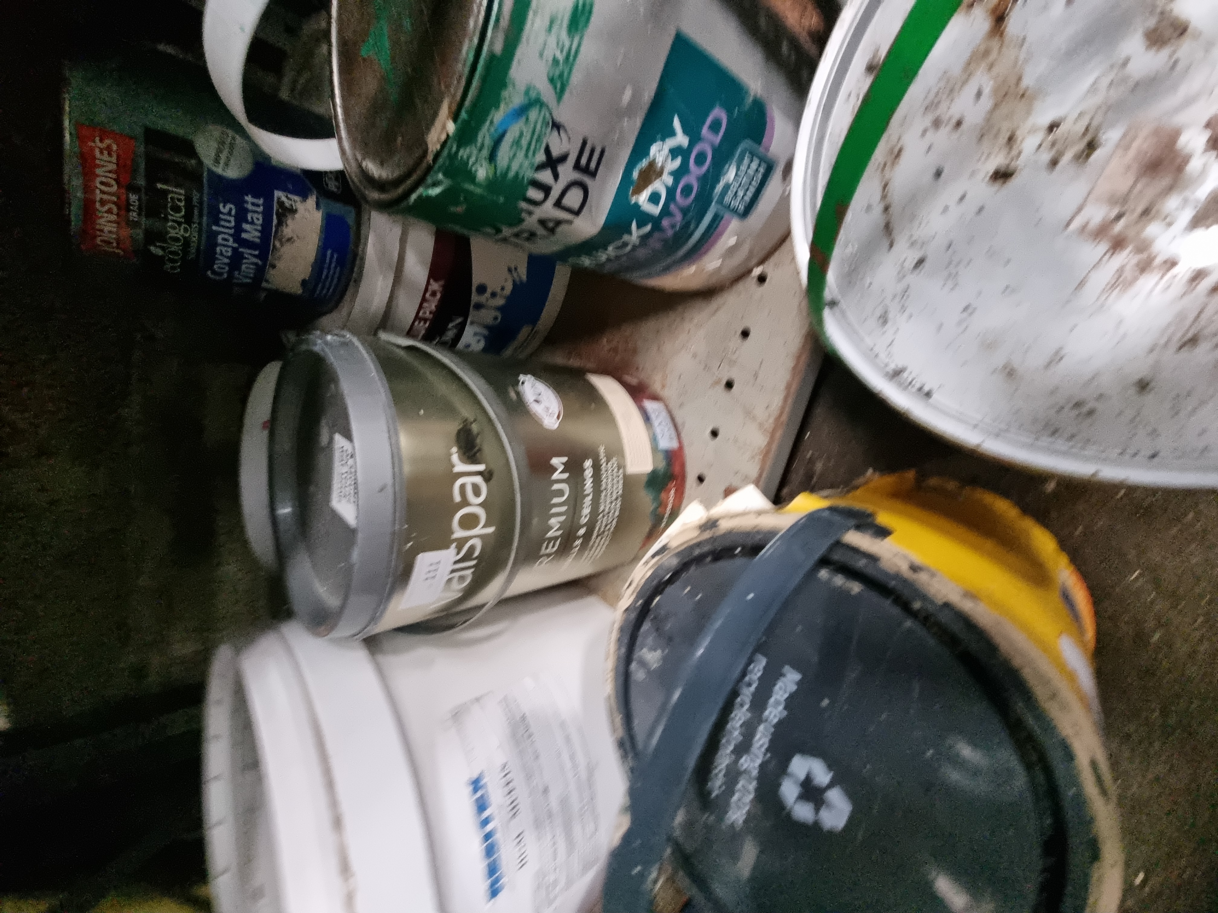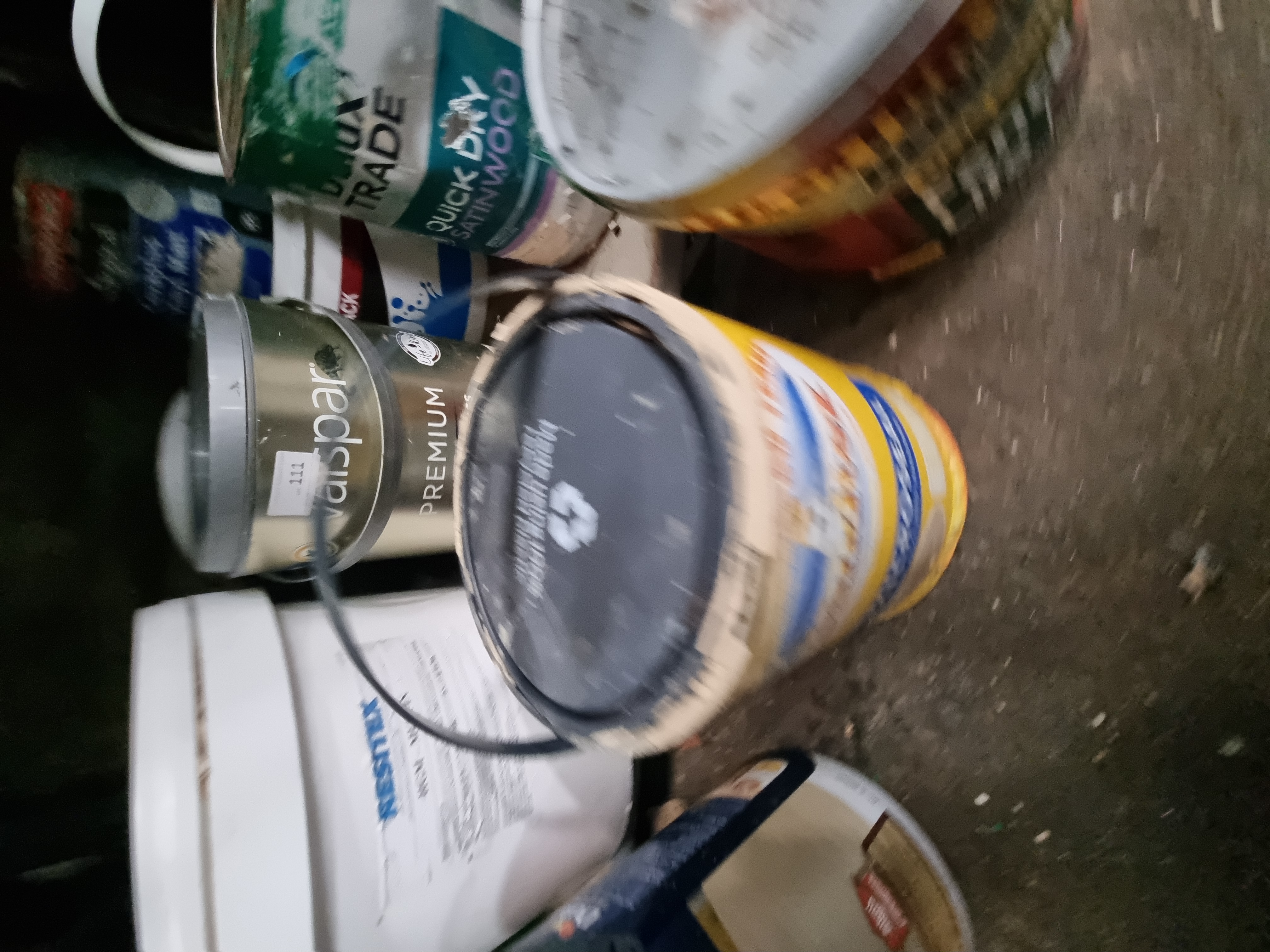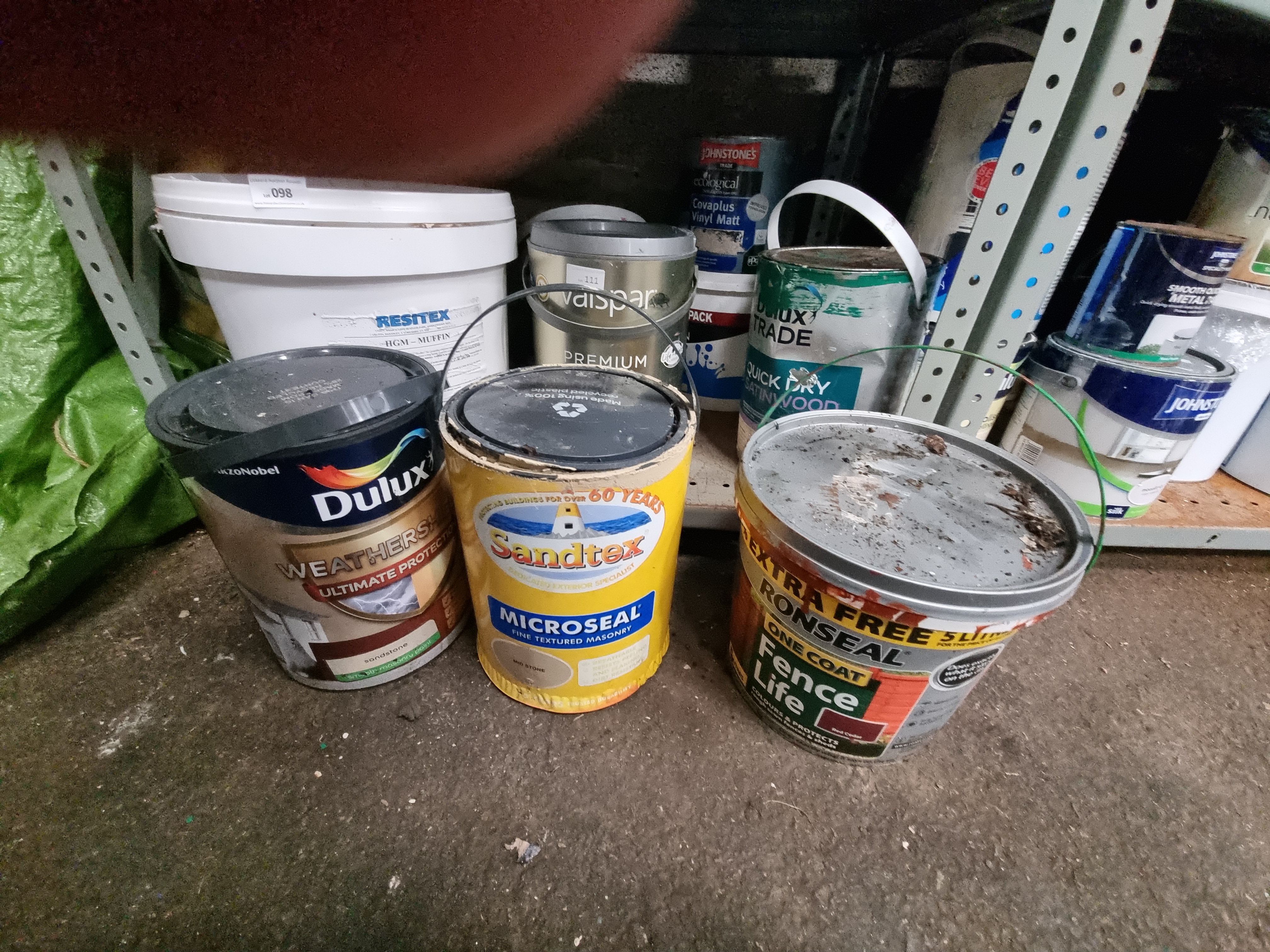 Lot 98: An Assortment of Mixed Exterior and Interior Paints, Wood Stains, and Masonry Coatings including Dulux, Sandtex, and Ronseal