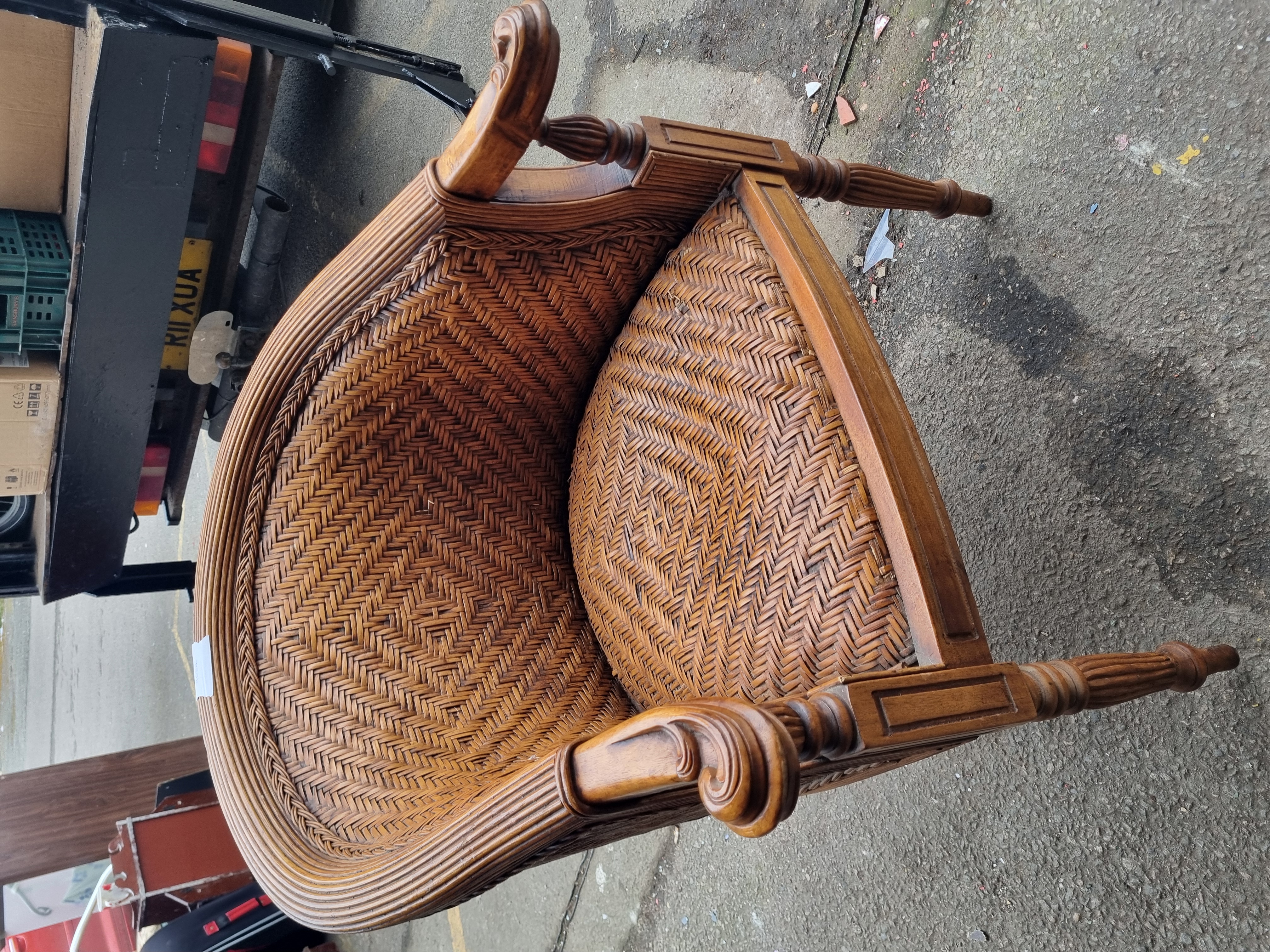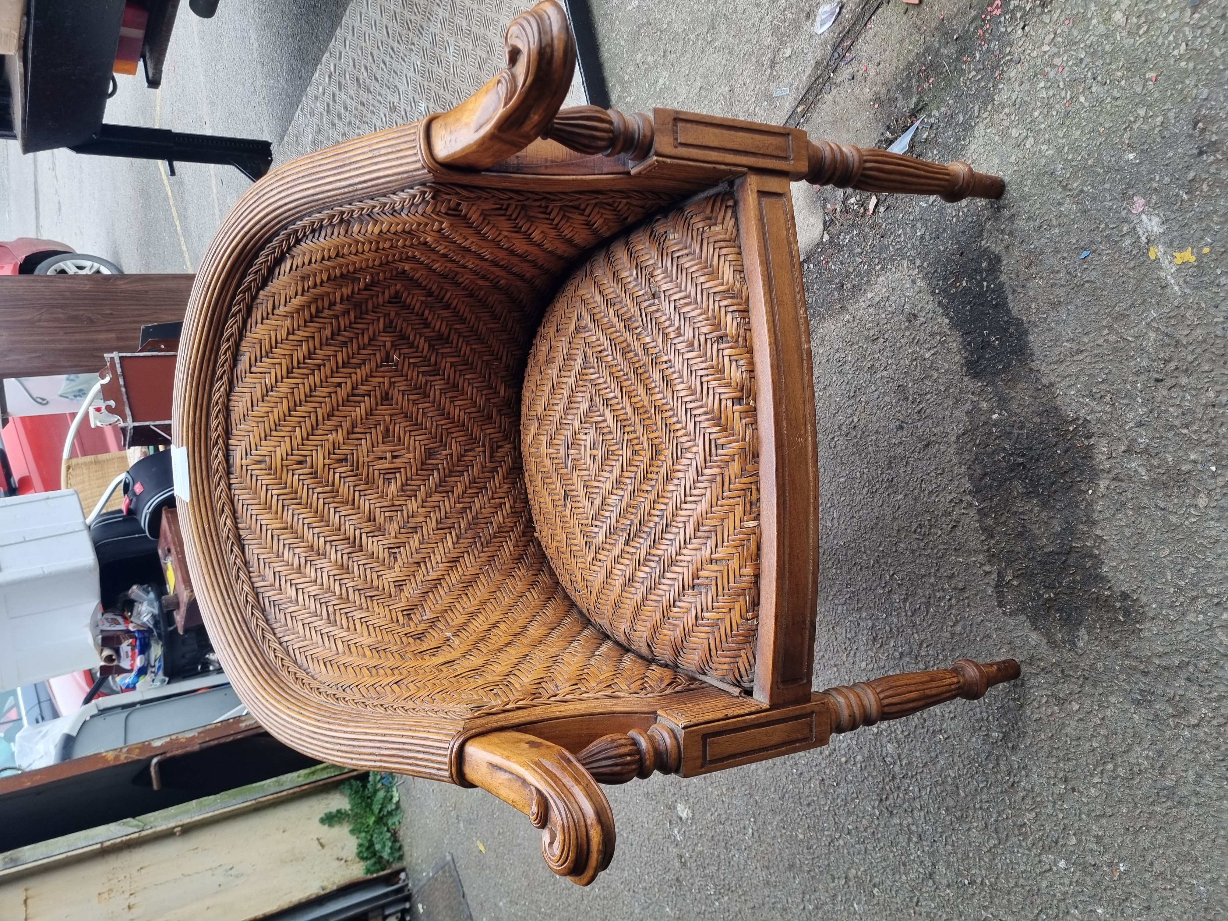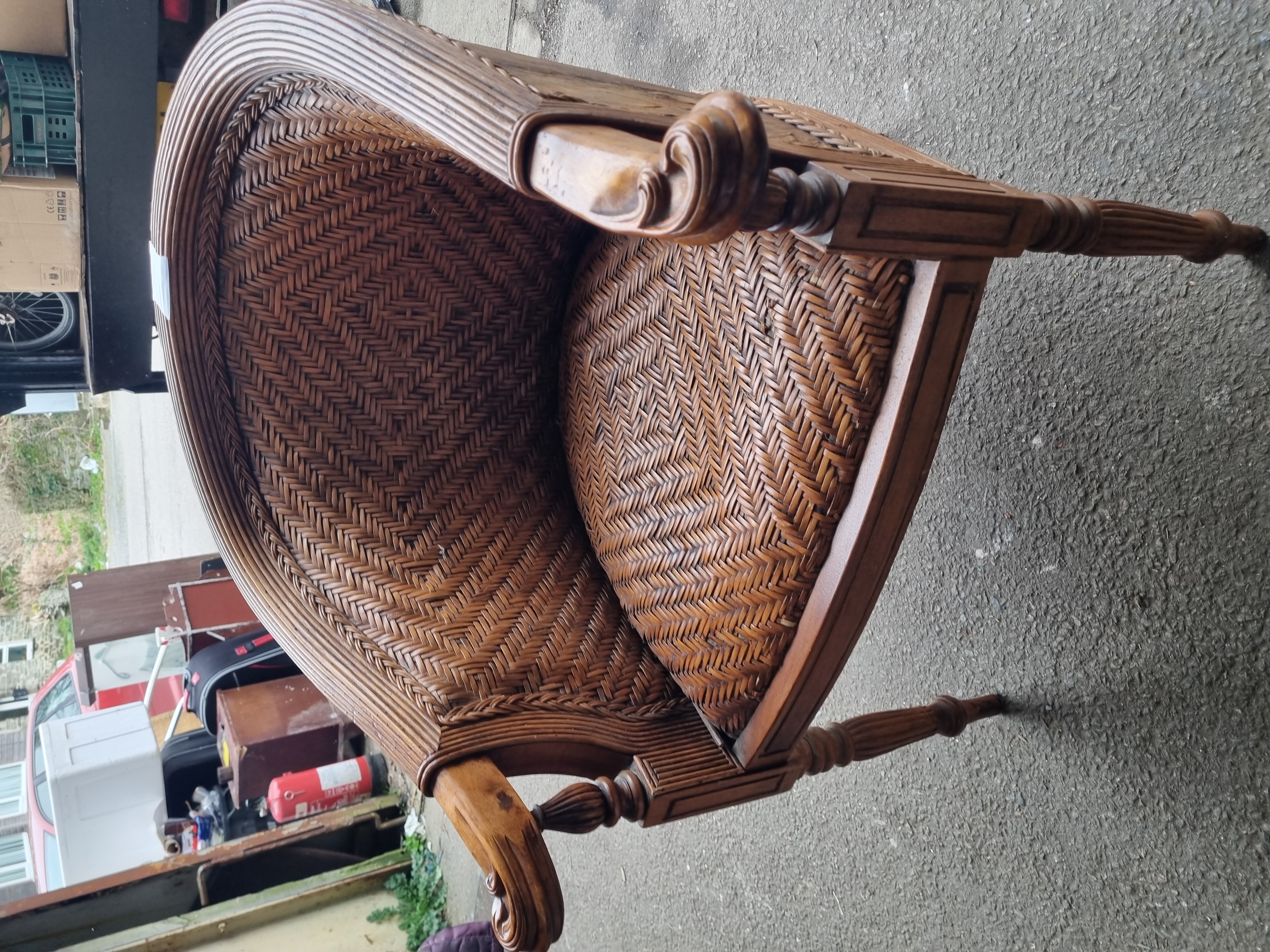 Lot 992: A French Provincial Style Woven Cane and Hardwood Tub Chair