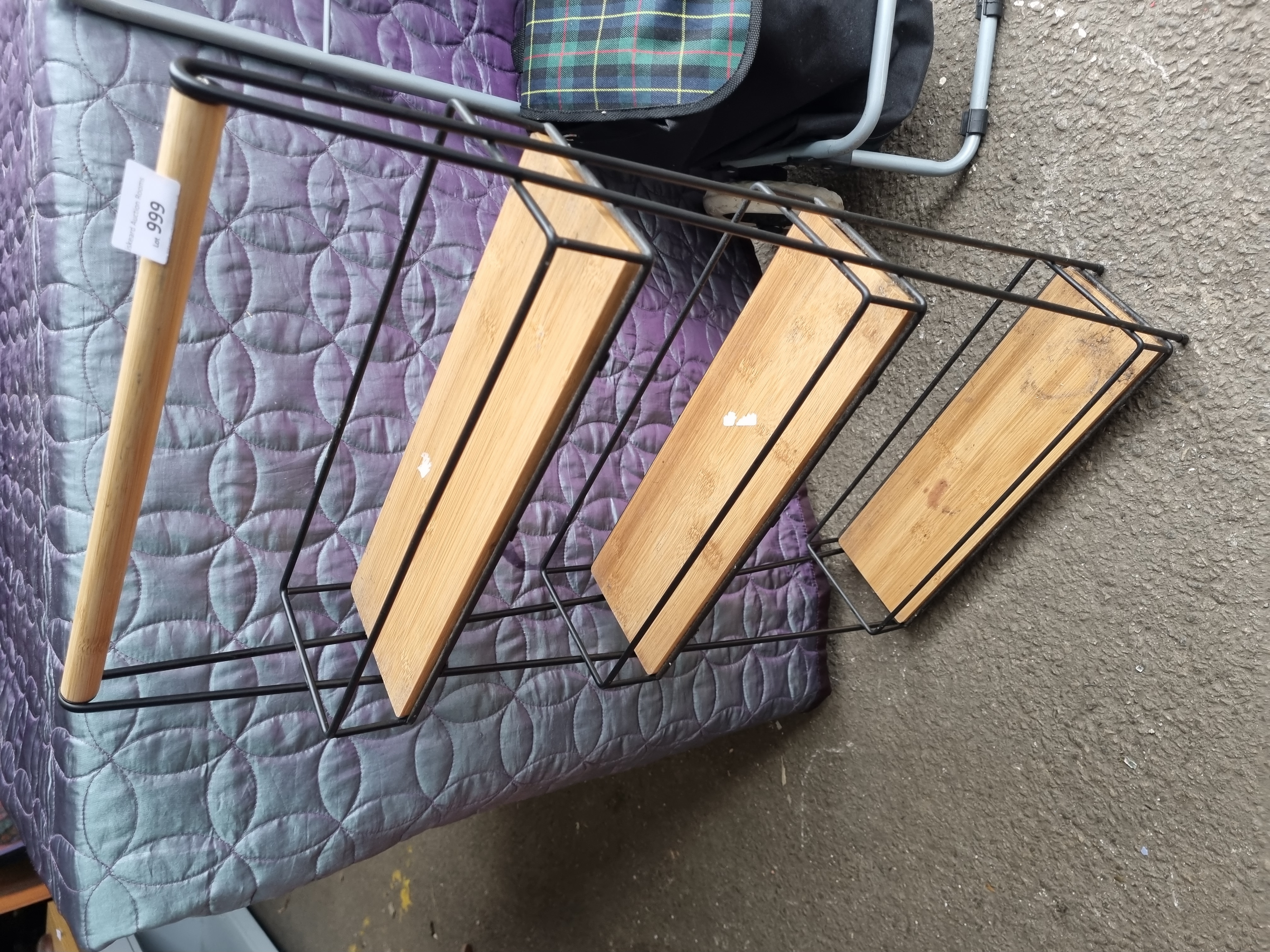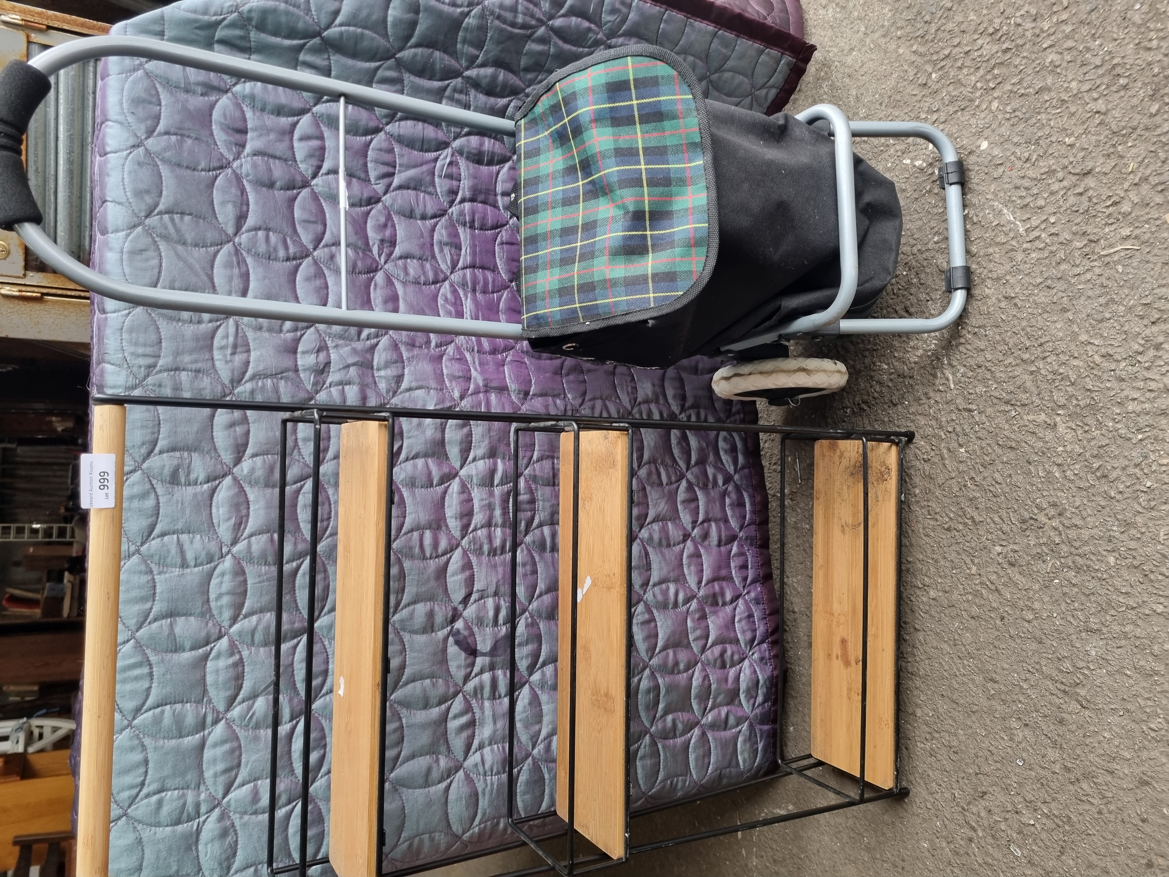 Lot 999: Three Household Items Including a Shopping Trolley, a Three-Tier Storage Stand, and a Quilted Throw