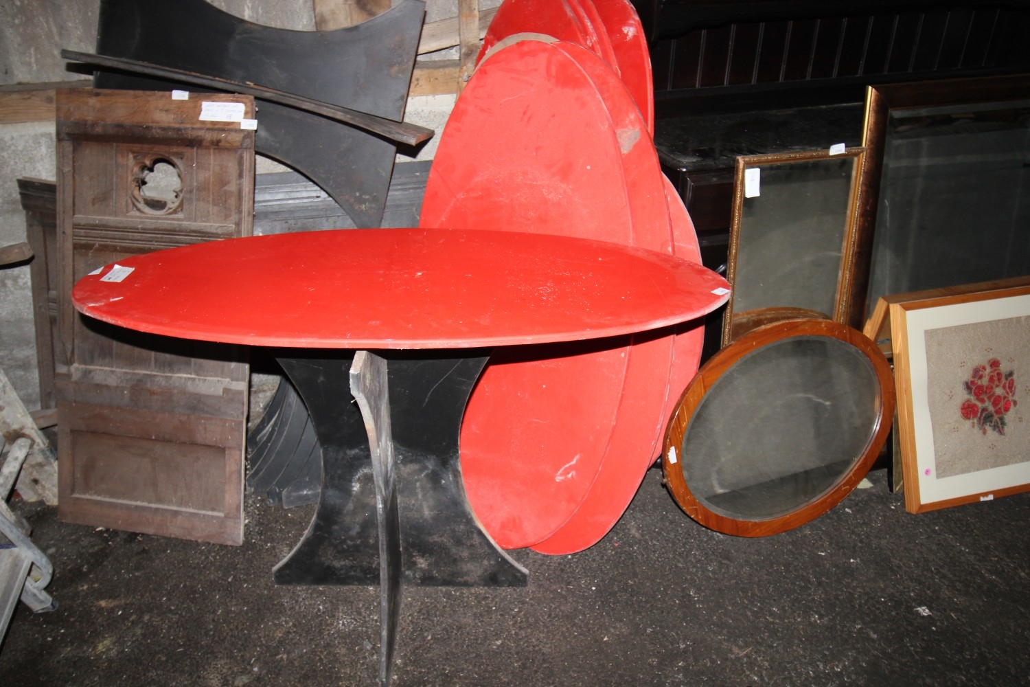 Lot 1: Large collection of flat-pack slot-together oval tables, perfect...