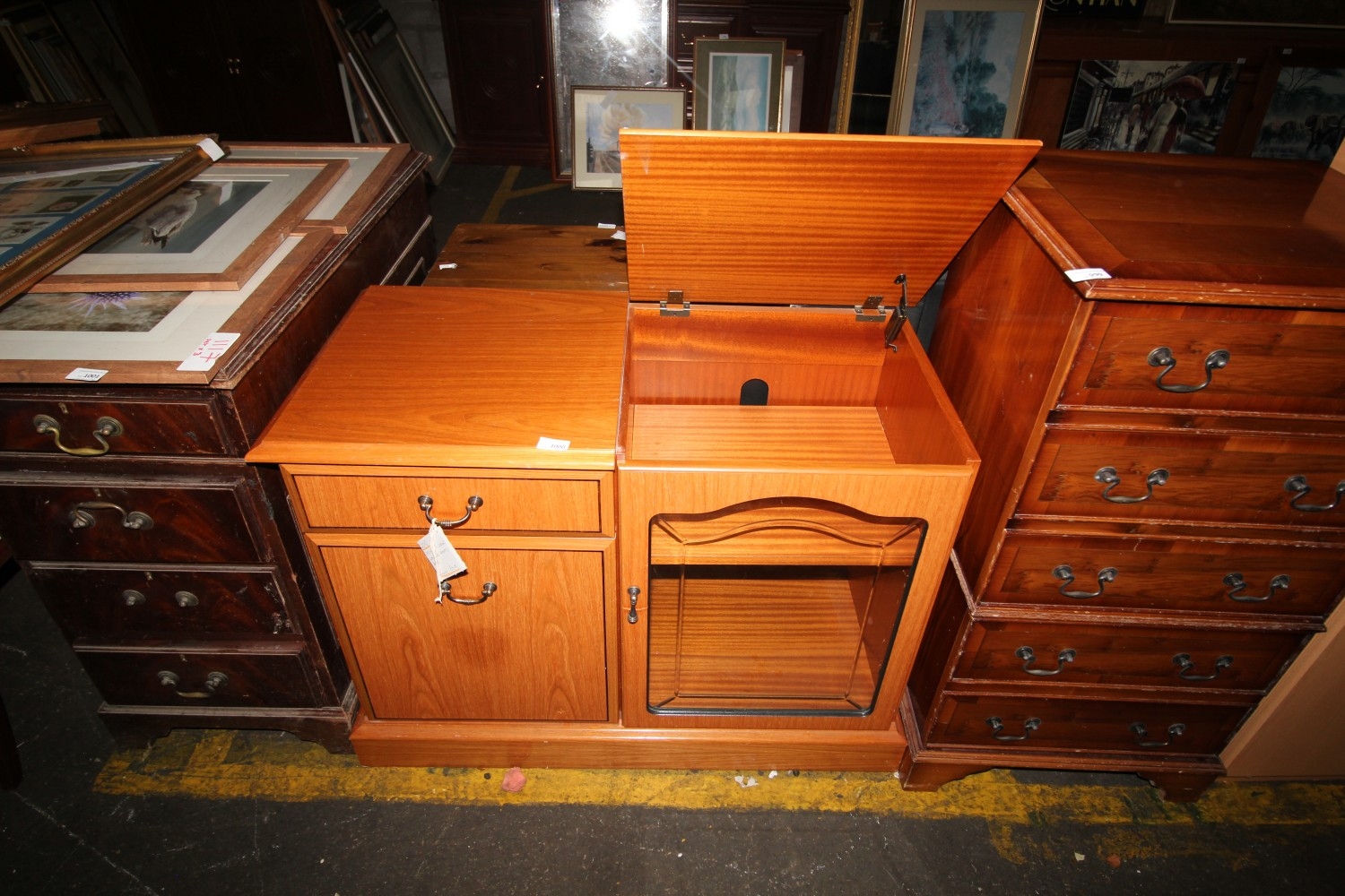 Old charm entertainment unit with felt lined drawer, lift top for access to turntable and LP storage cupboard