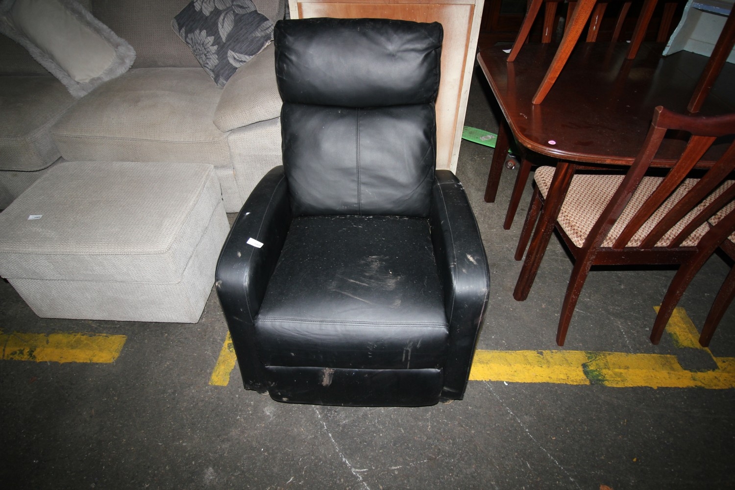 Lot 1008: Quality Dunelm black leather reclining armchair. Needs a...