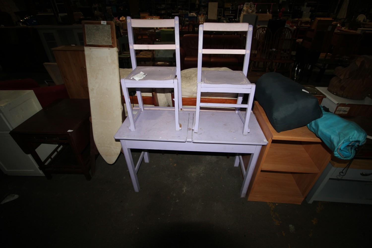 Lot 1027: Vintage compact lift-top school desk with two matching...