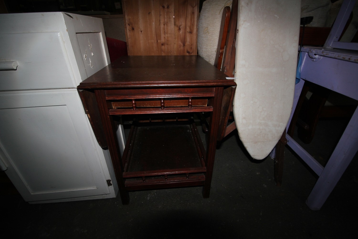 Lot 1029: Dropleaf oak side table with railed shelf under