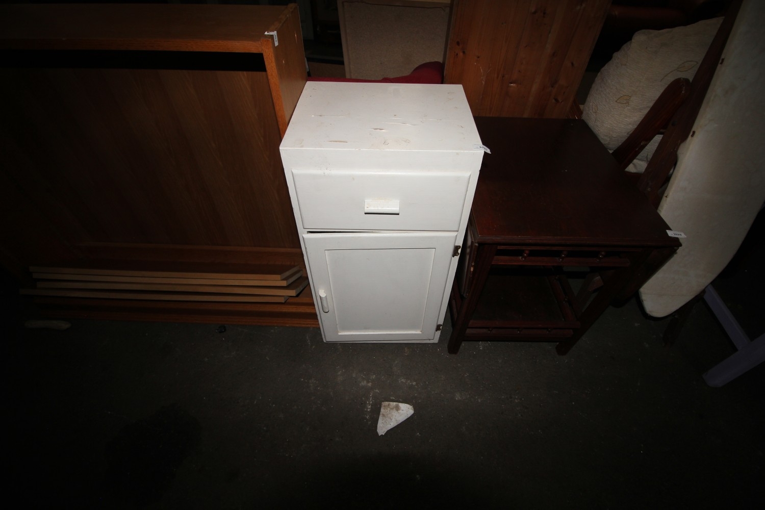 Lot 1030: Vintage white-painted hardwood one drawer one door cabinet