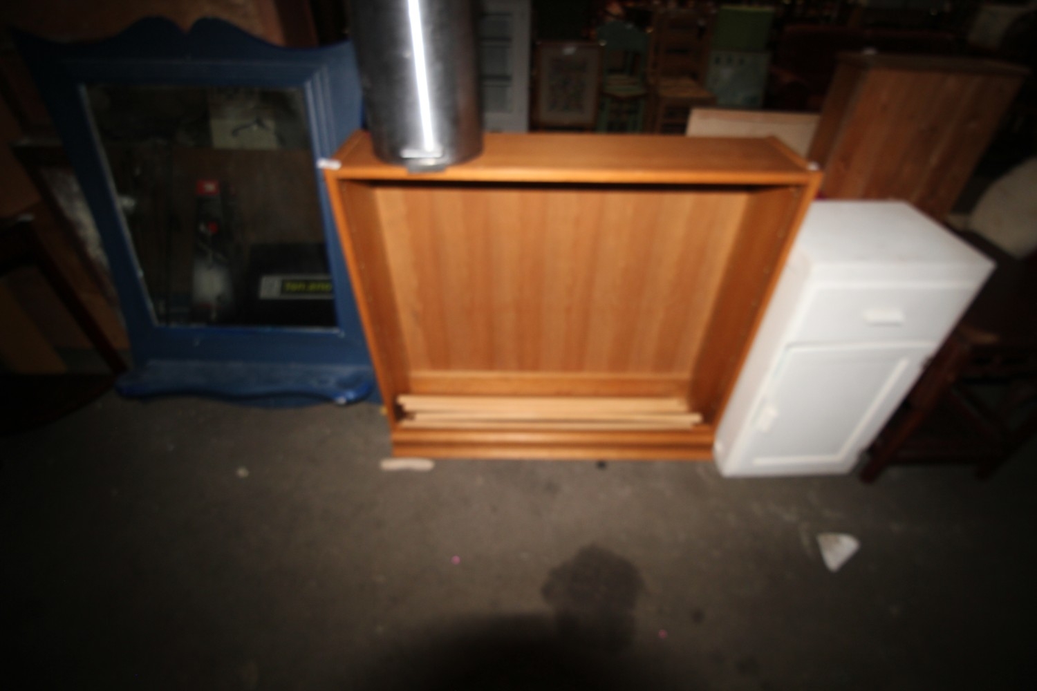 Lot 1031: 34" tall wooden shelving unit