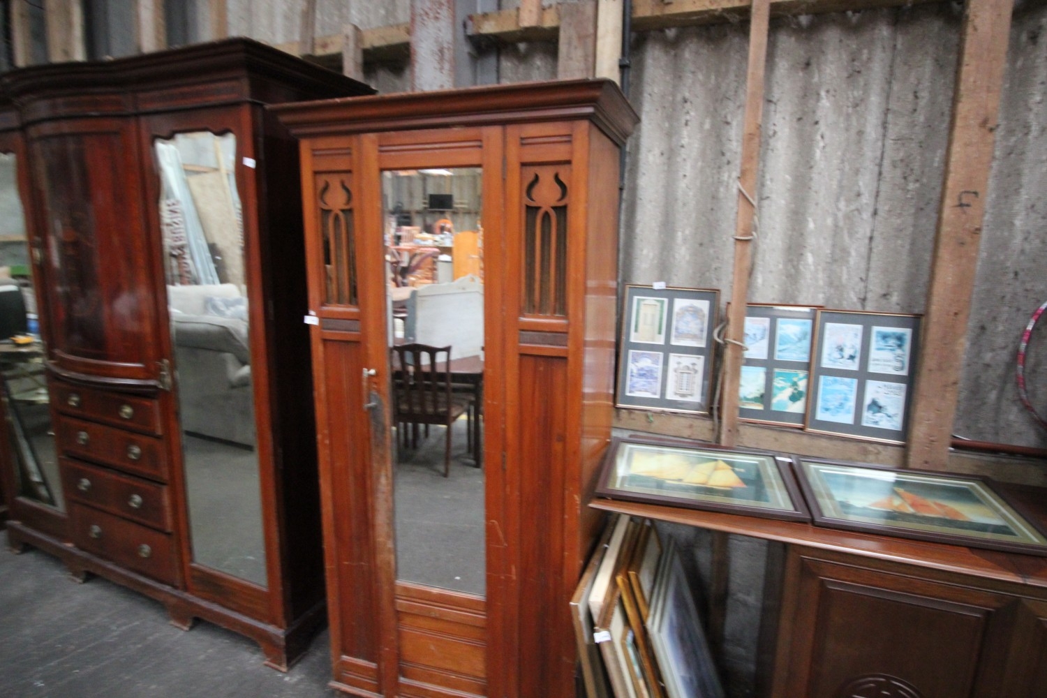 Lot 1069: vintage tall wooden wardrobe with mirror standing 191...