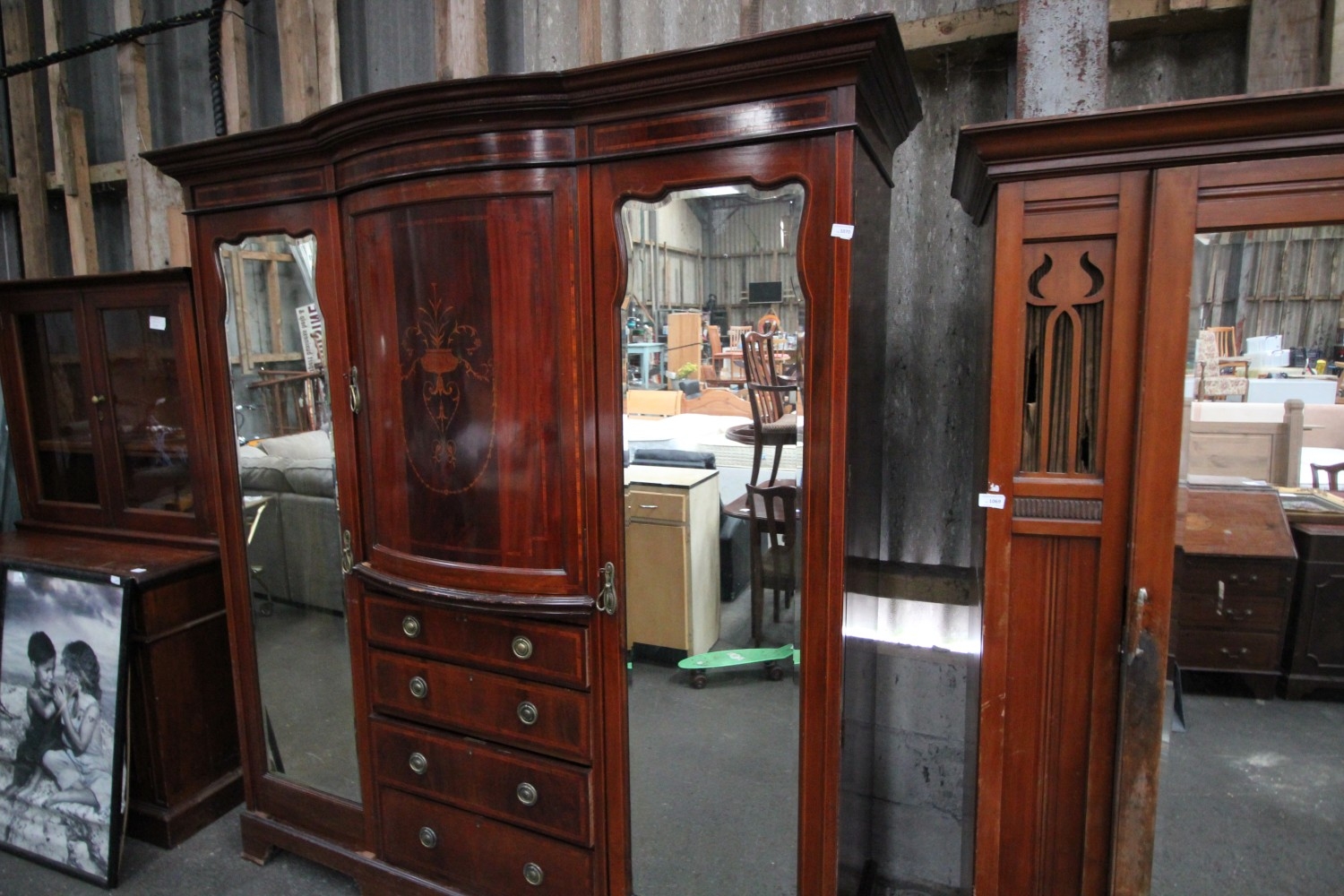 Lot 1070: Antique late Victorian inlaid mahogany triple wardrobe in...