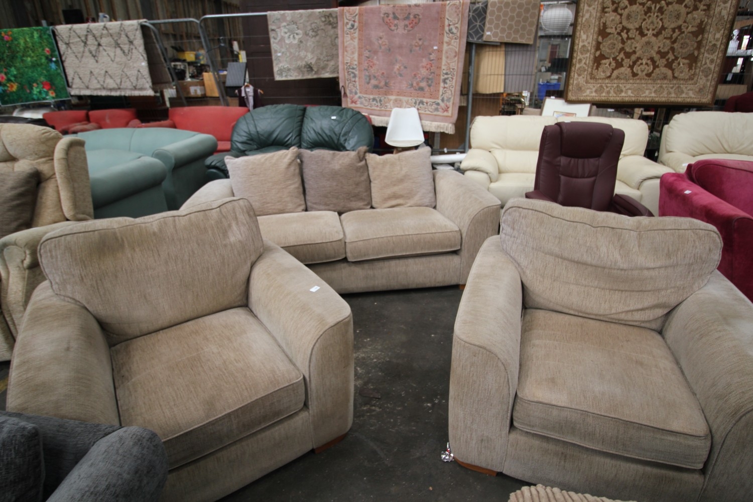 Lot 1082: Comfortable grey and beige three piece suite