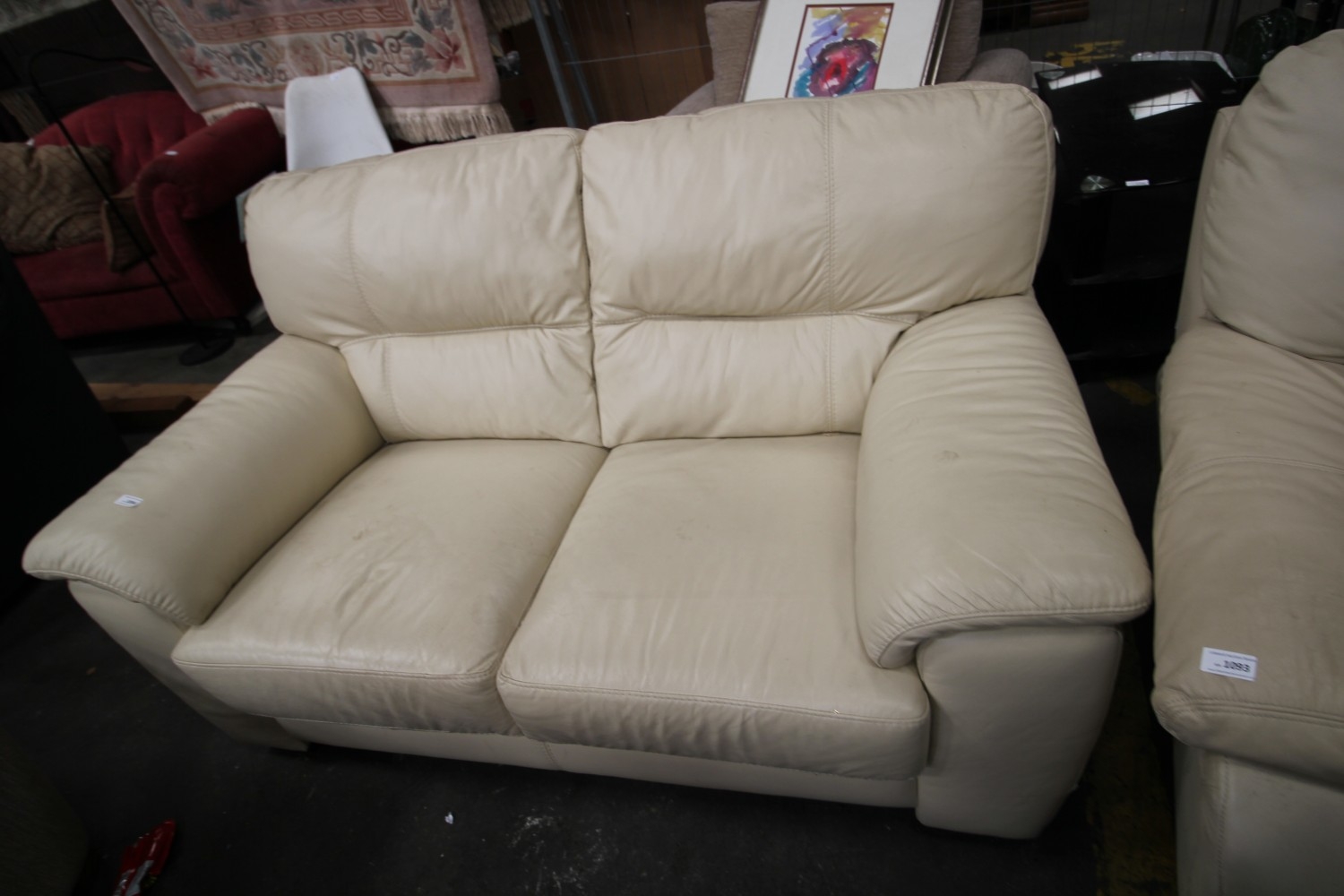 Lot 1094: Ivory coloured leather two seater sofa in very...