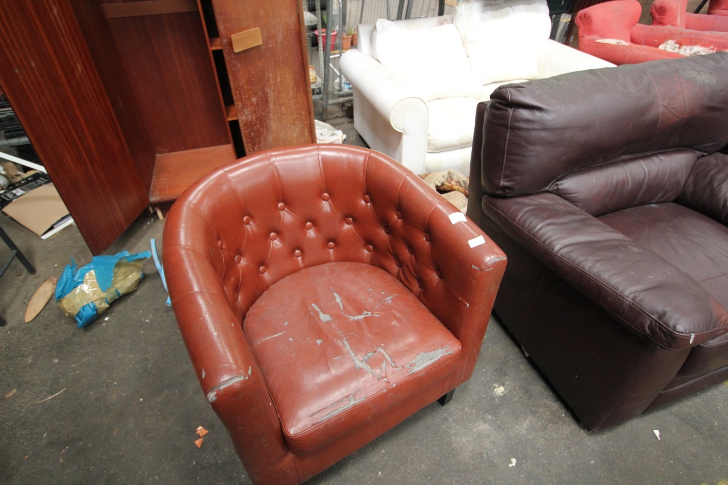 Lot 1097: faux leather burnt auburn coloured tub chair