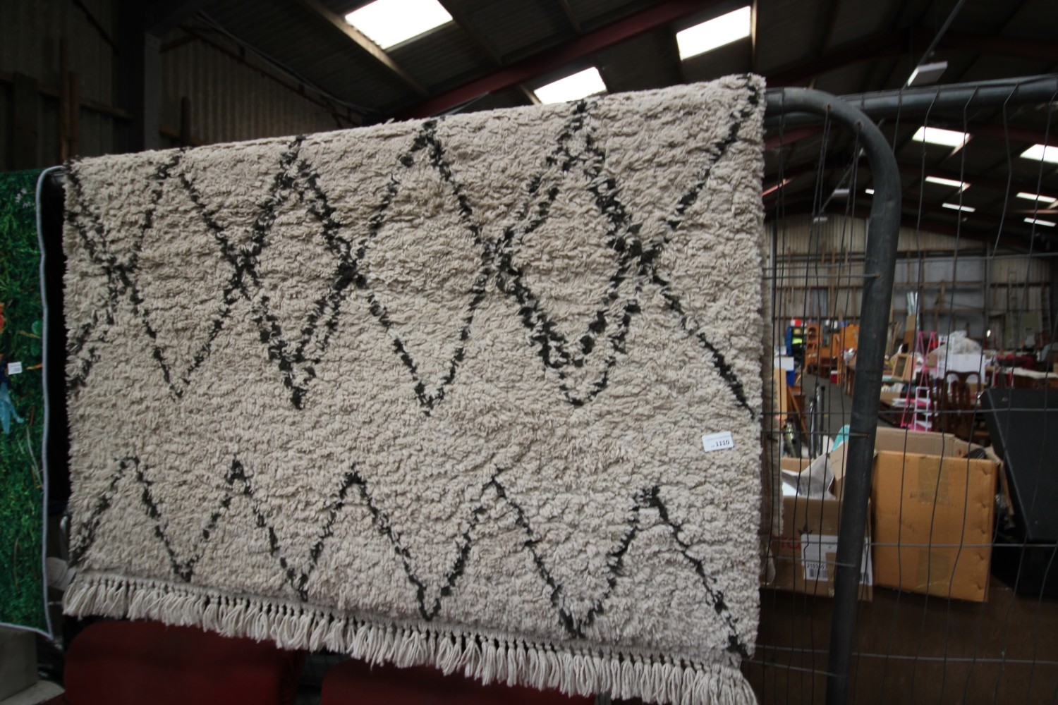 Lot 1110: shaggy grey diamond pattern rug with tassels