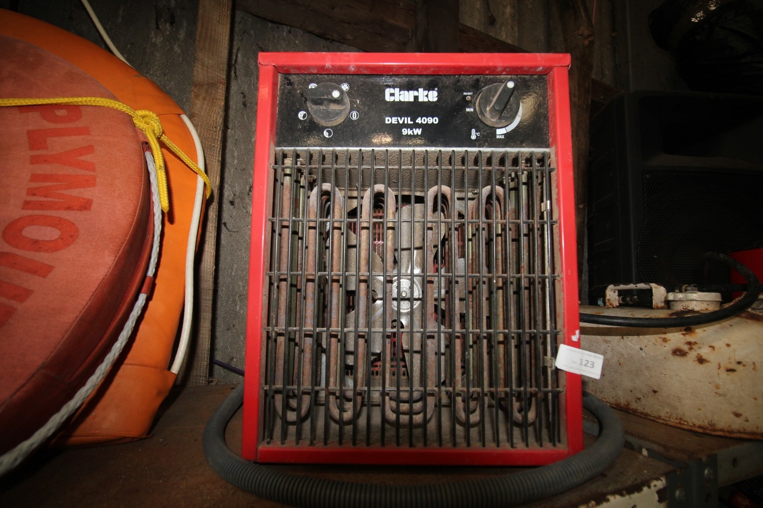Lot 123: clarke devil 4090 9kw space saver electric fan...
