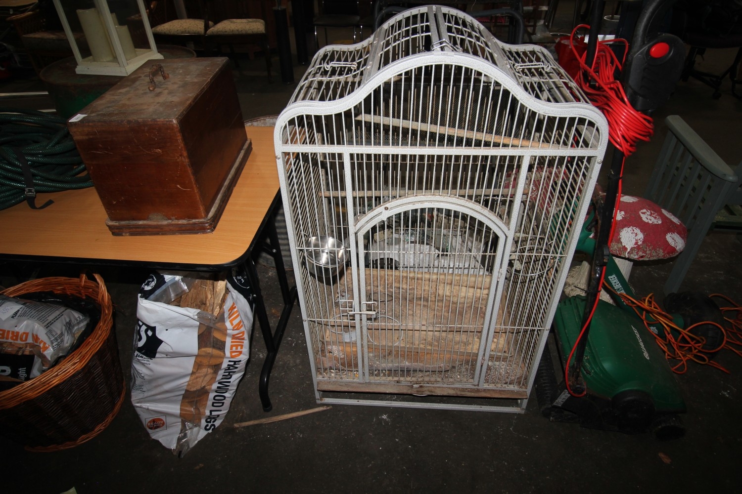 Large bird cage with some attached accessories – stands 115cm tall approx