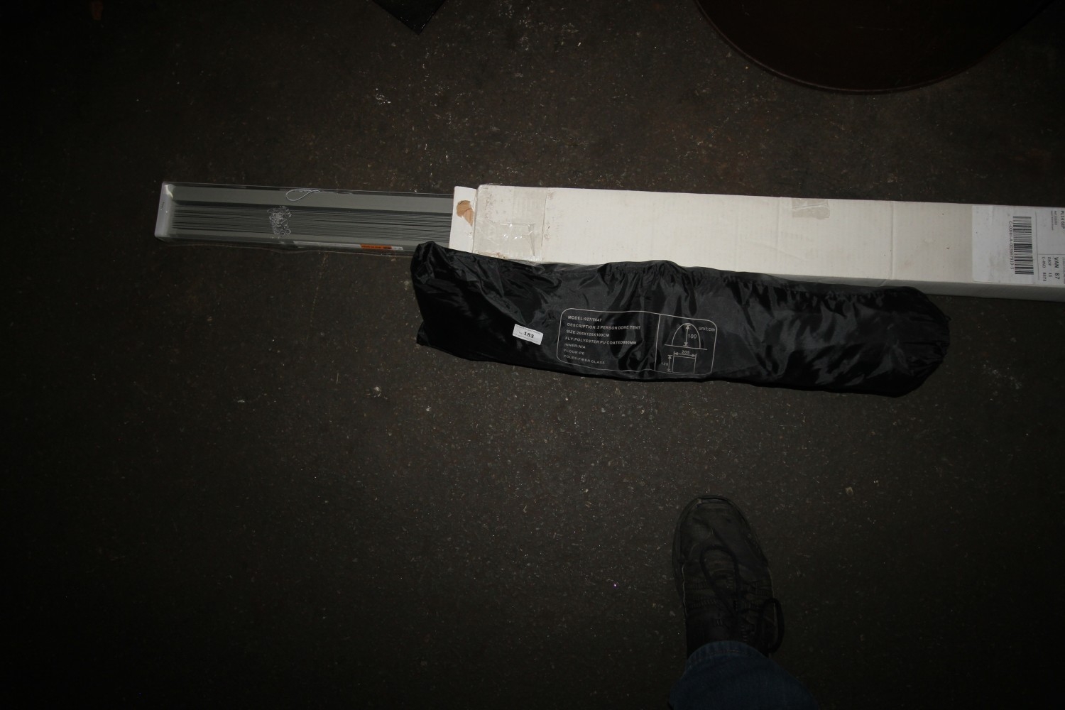 brand new boxed window blind and a two man compact dome tent