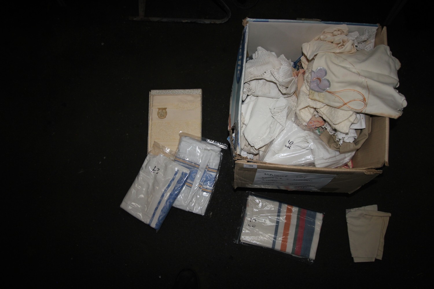 Lot 188: Massive lot of vintage and modern linen including...