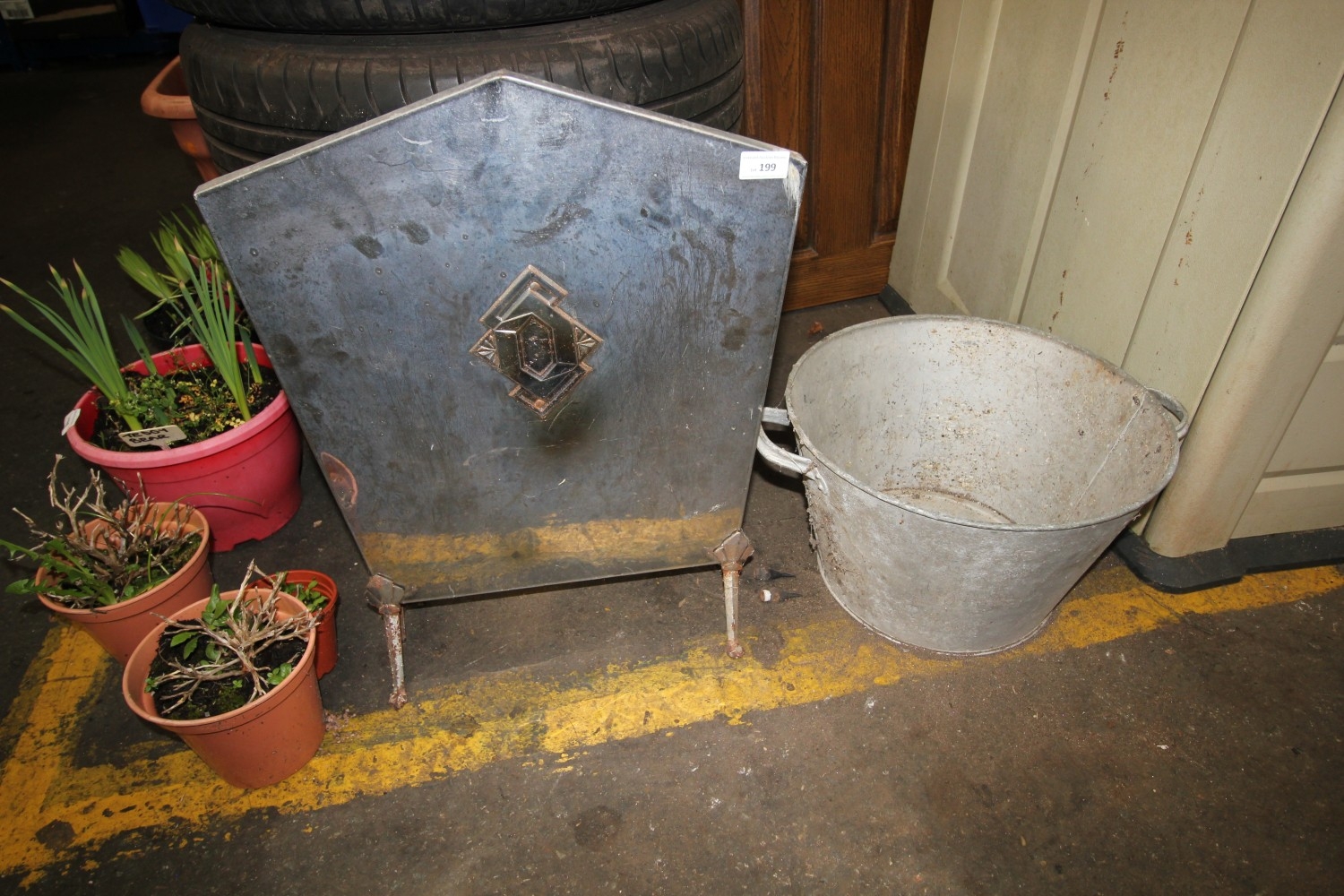 Vintage Art Deco chrome coated brass fire screen plus a galvanised steel tub