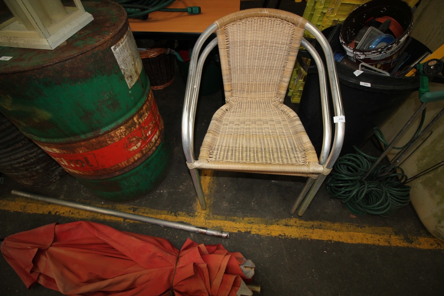 Lot 221: Two lightweight aluminium and rattan garden chairs in...