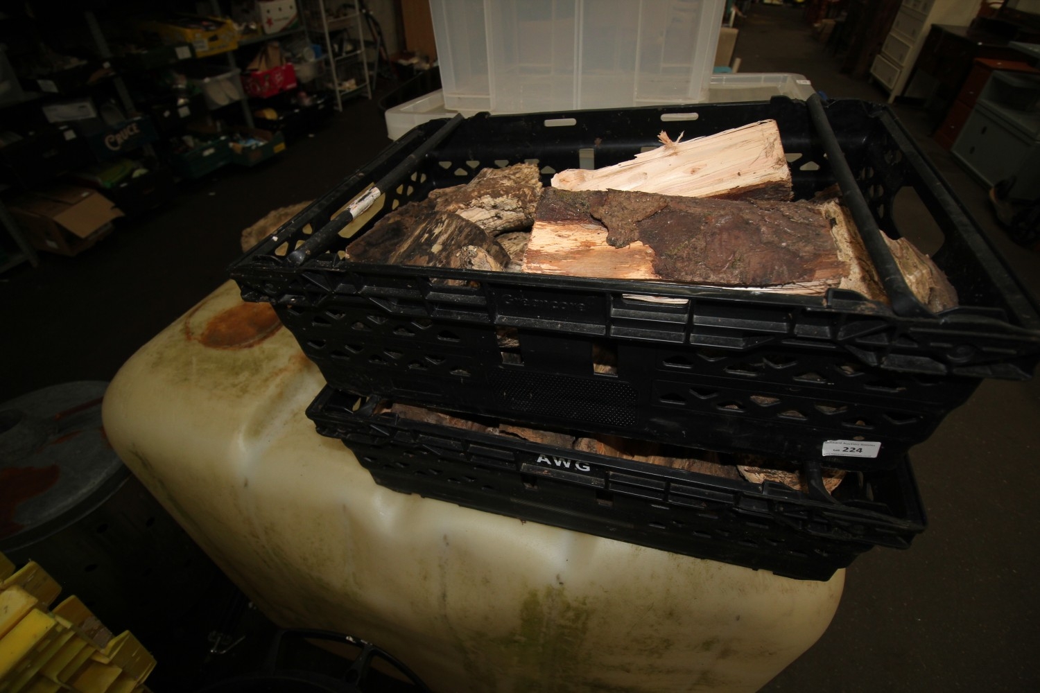 Lot 224: Two large crates of seasoned split logs