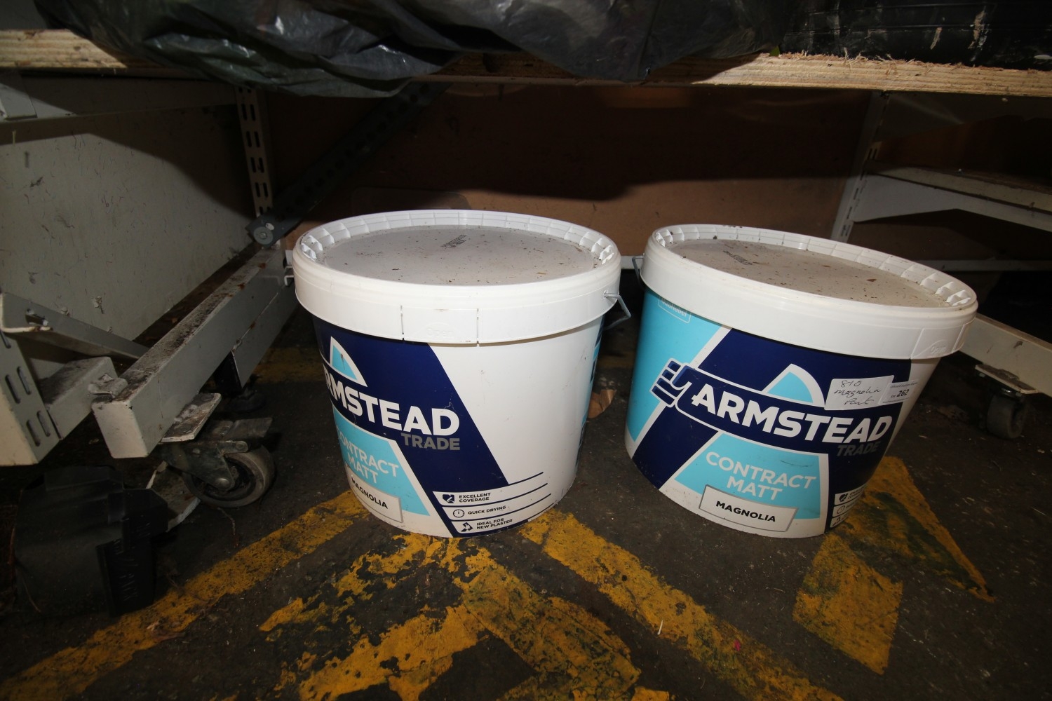 Lot 262: Two 15L tubs of contract magnolia paint -...