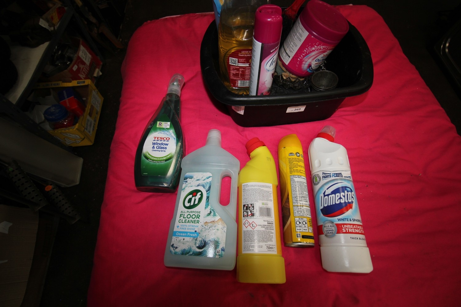 Lot 269: washing bowl full of cleaning contents inc bleach,...