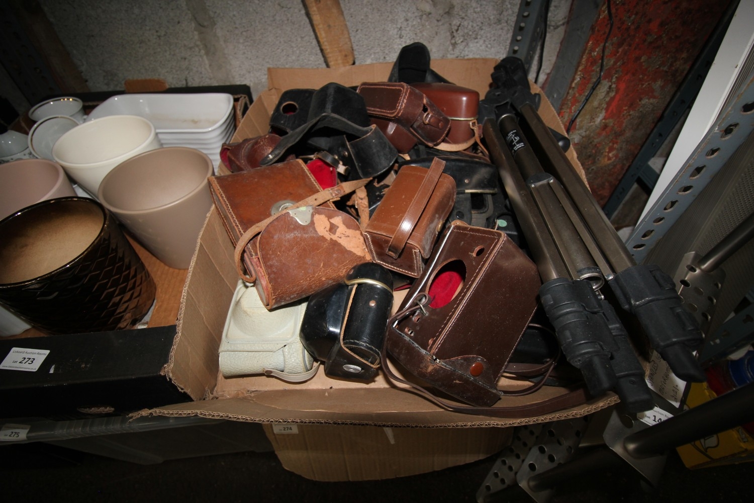 Lot 272: A box of empty vintage camera cases with...