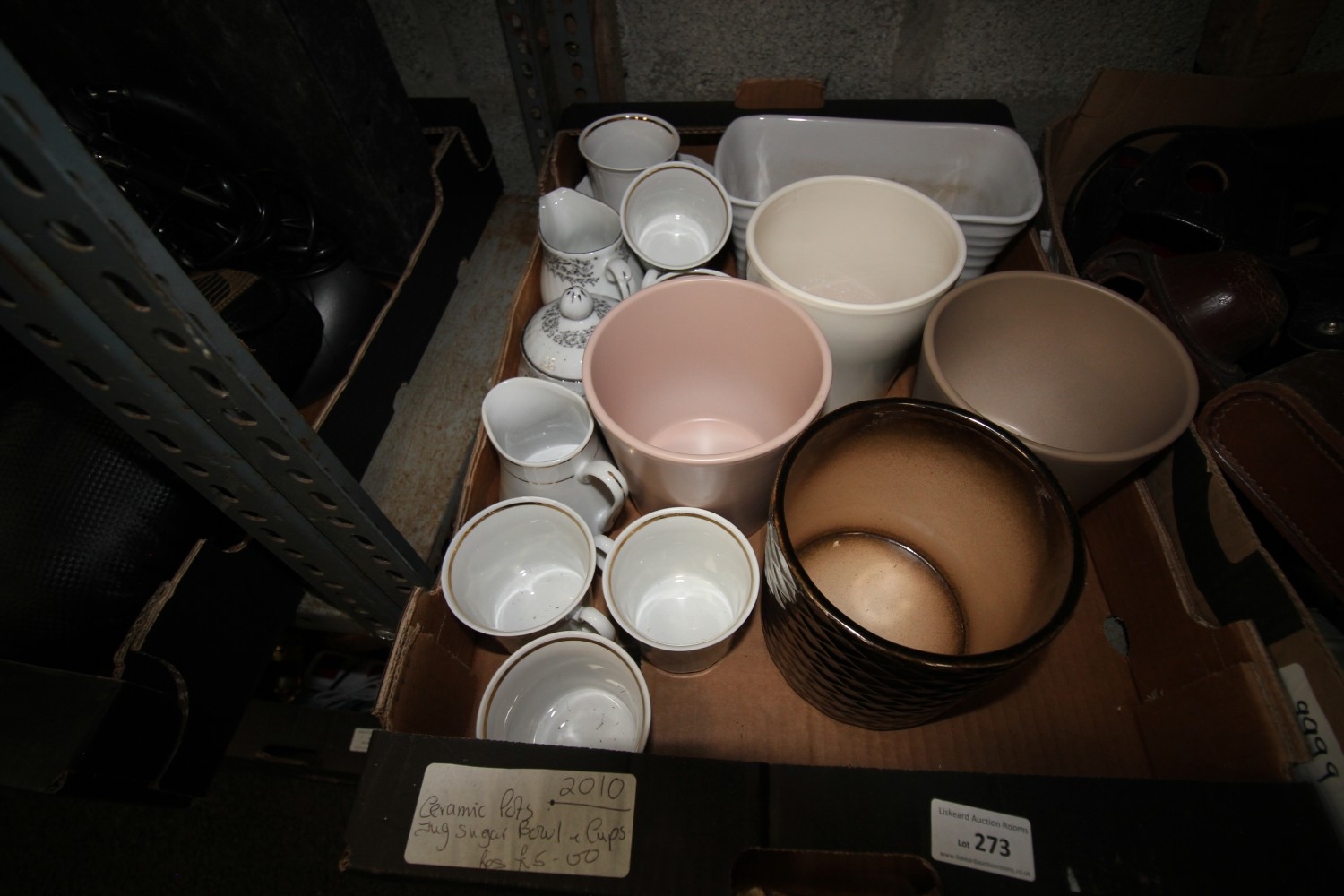 Lot 273: ceramic pots inc jug, sugar bowl and cups