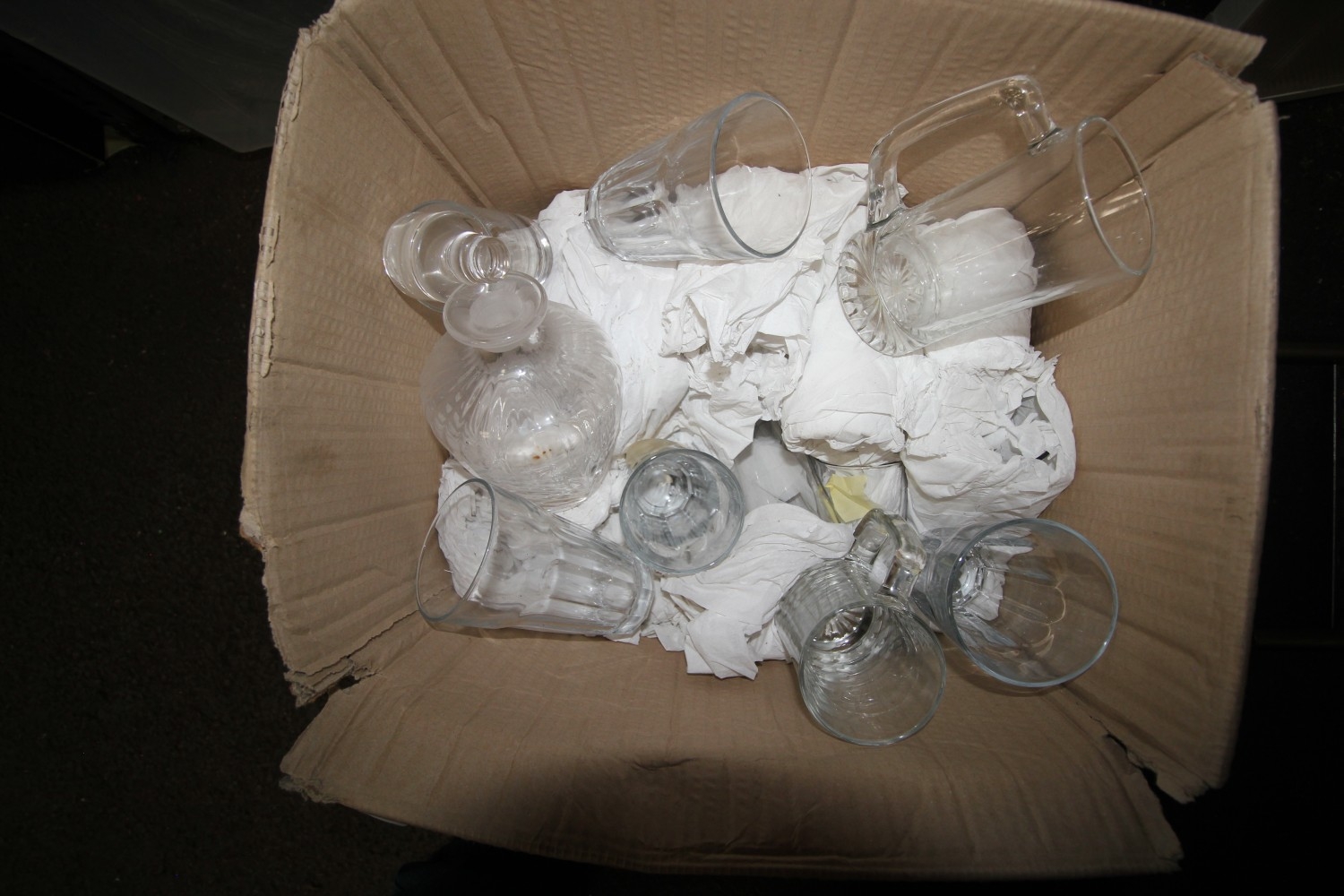misc box inc glass tumblers, glass beer mugs, decanter and more