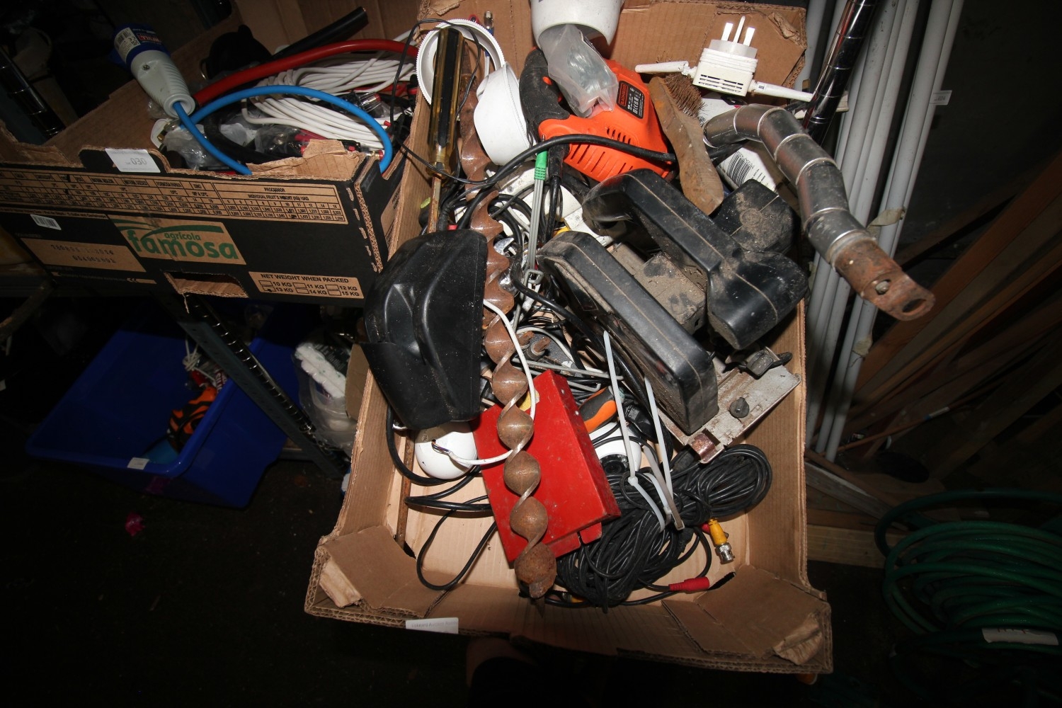 Large quantity of hardware and tools inc. Black and Decker BD227 circular saw, very large auger bit, torx bit sockets, spanners, screwdrivers, Black and Decker jigsaw and more