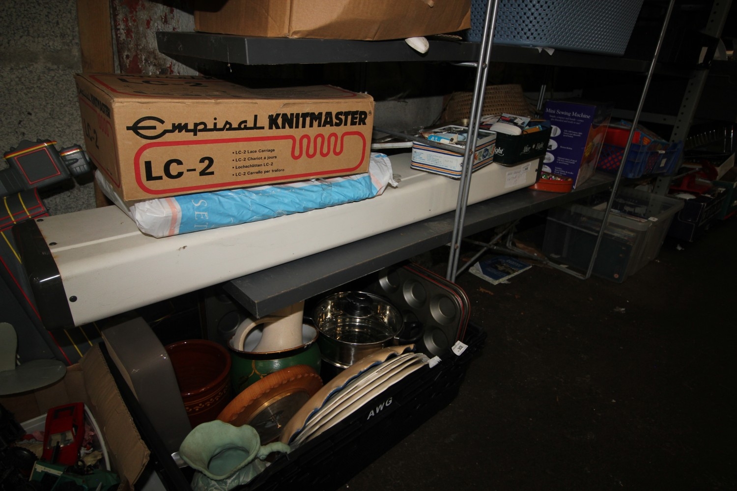 very large qty of sewing equipment inc mini sewing machine, knitmaster, threads, beads, knitting books and much more