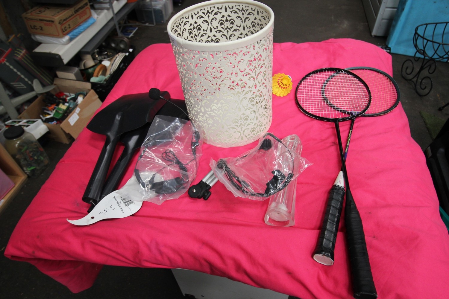 decorative metal bin/storage inc badminton rackets, fireside products and more