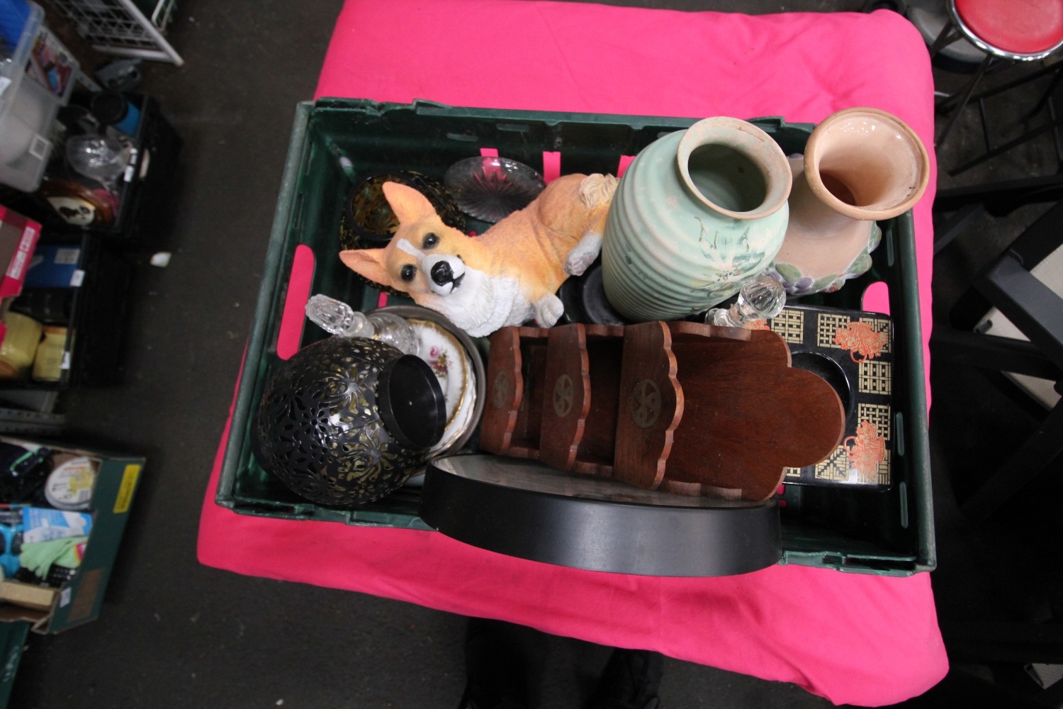 box inc items such as very lovely Earthen ware vases, large ceramic dog figure and more