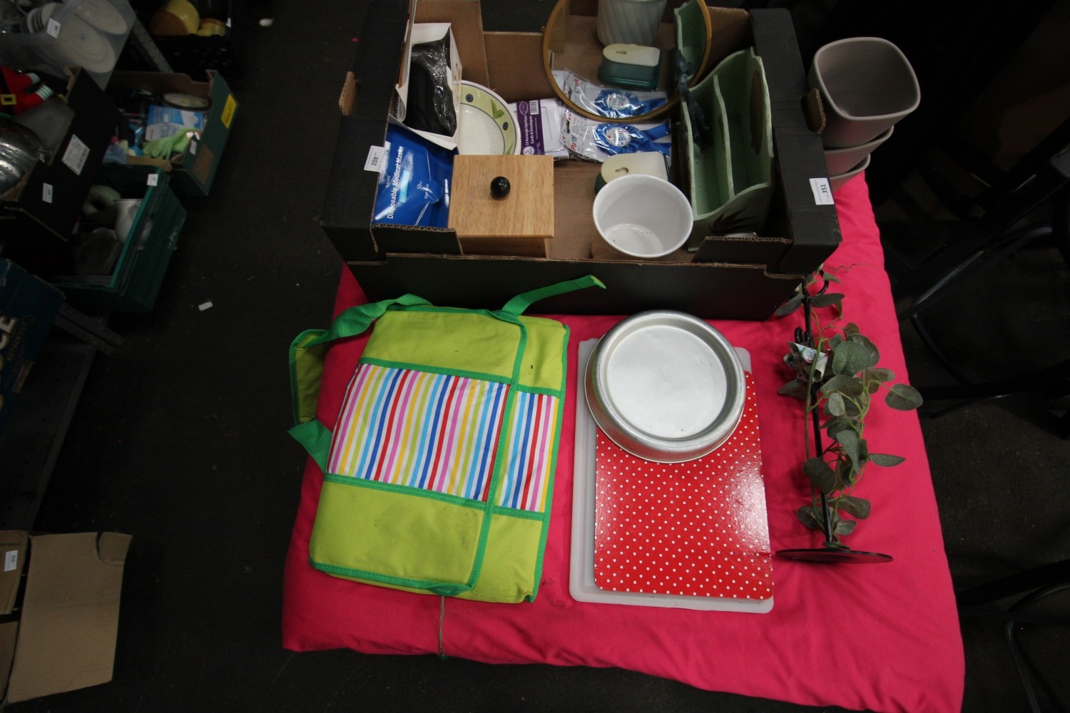 Lot 351: mixed box of misc inc plant pots, mirror,...