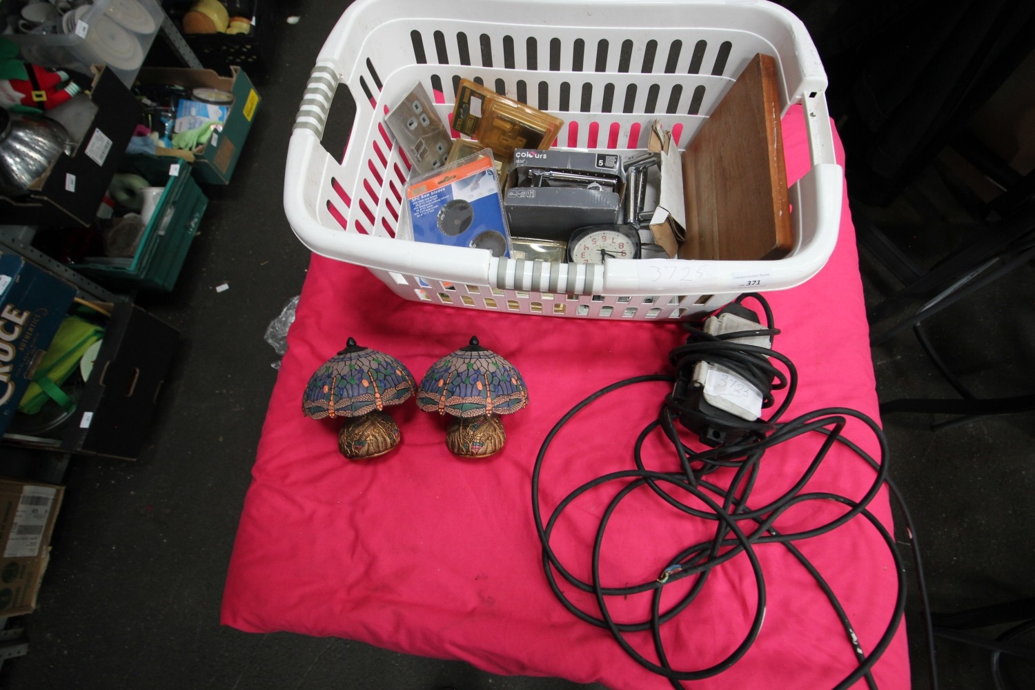 Lot 371: wash basket inc moroccan style lamps, plug fittings...